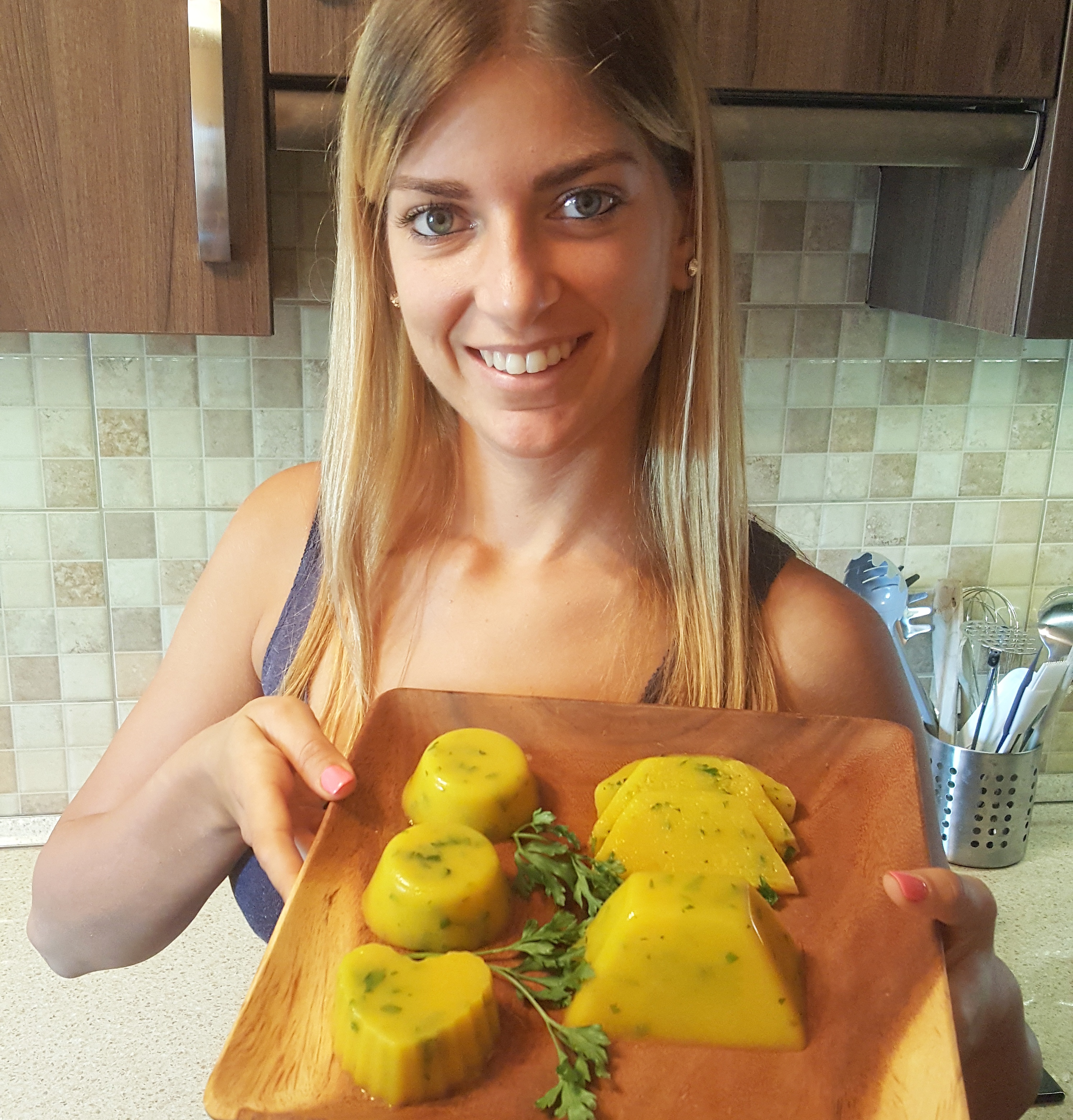 Slice the zucchini and steam it. Once it's soft, put it in a food processor with all the ingredients except the parsley. Blend it all together and once it's smooth, stir in the chopped parsley. Pour it in silicone muffin forms, and wait until it cools down, then put it in the fridge. Once it congeals, it will be nicely sliceable.