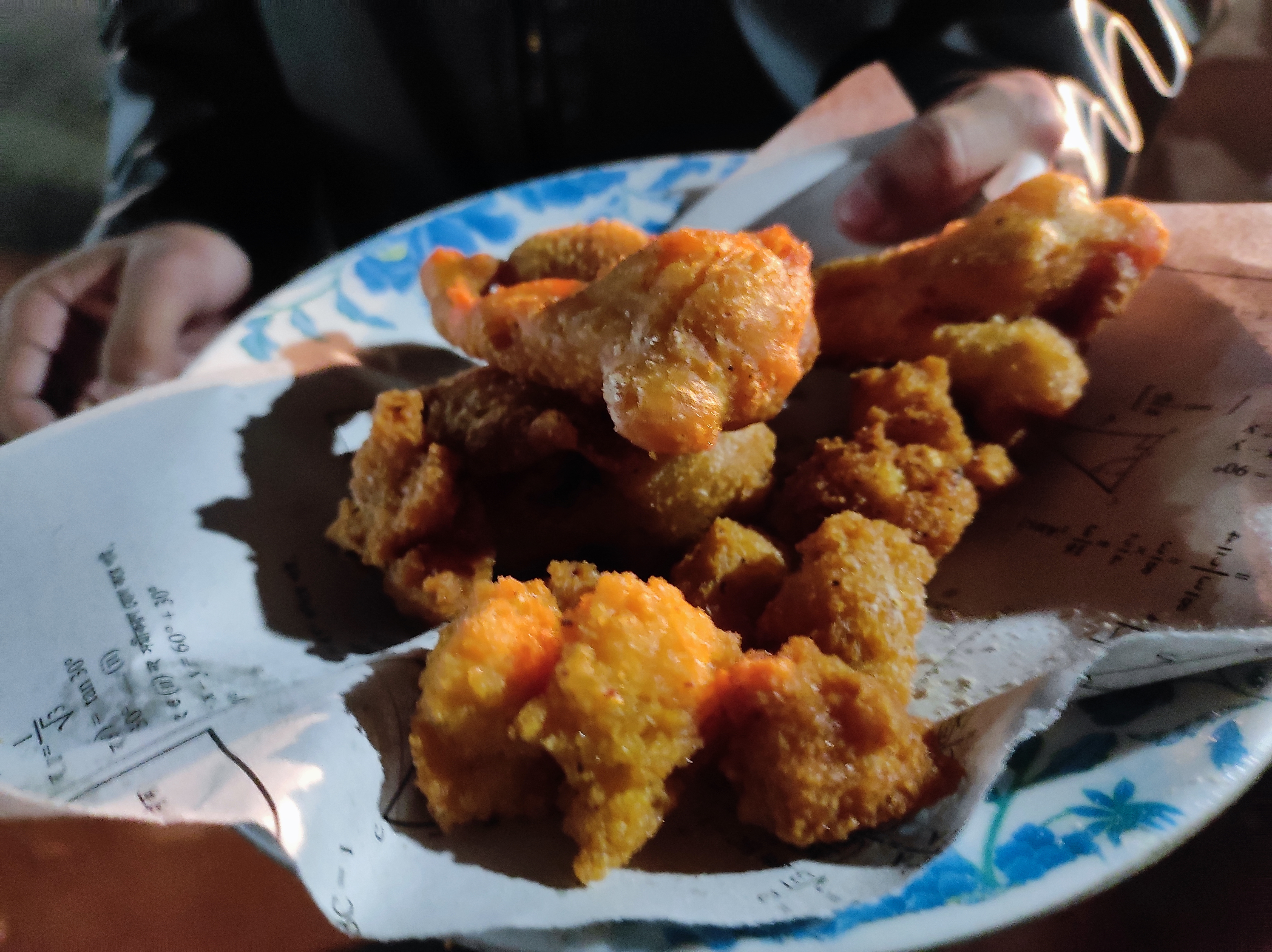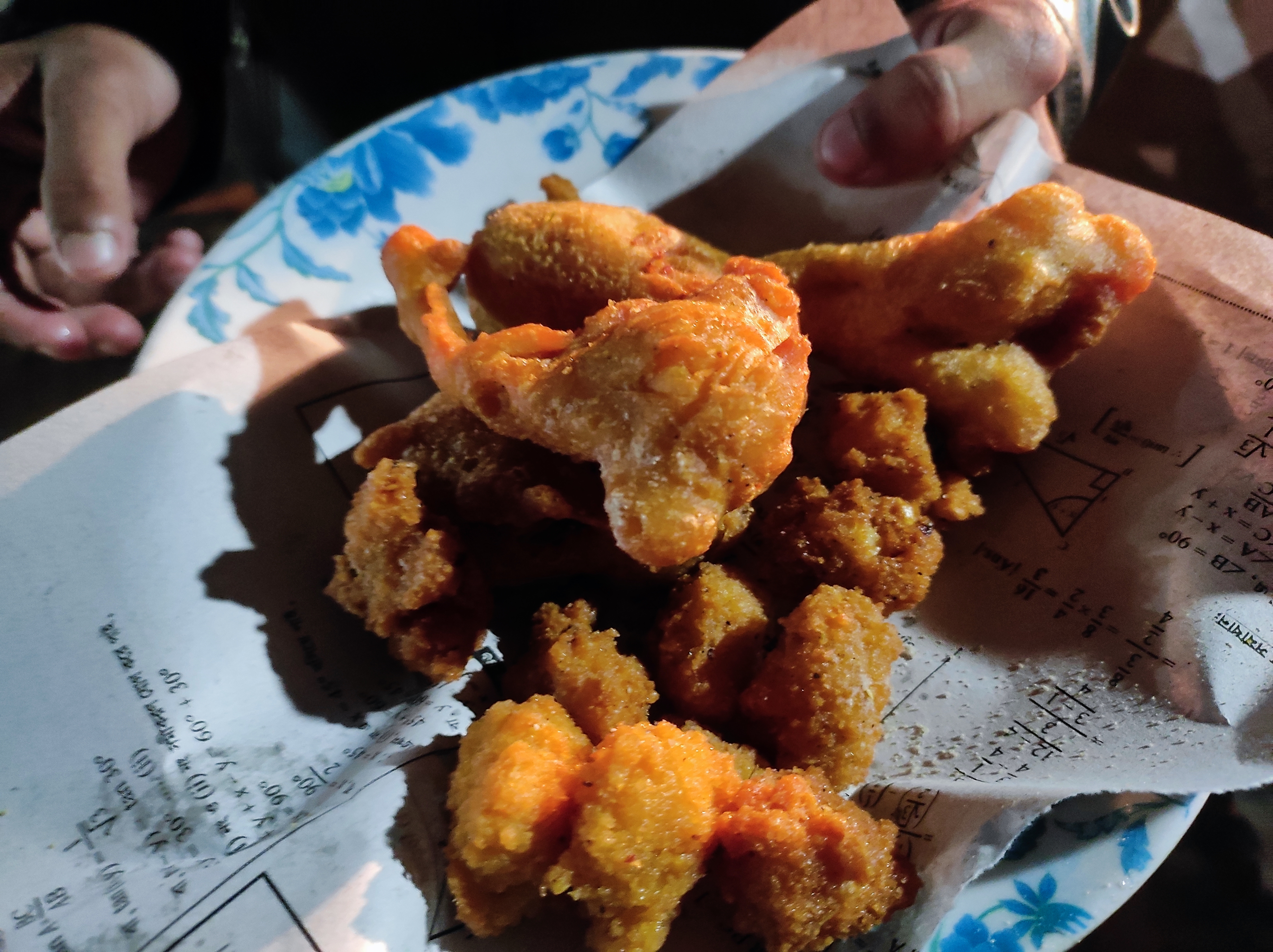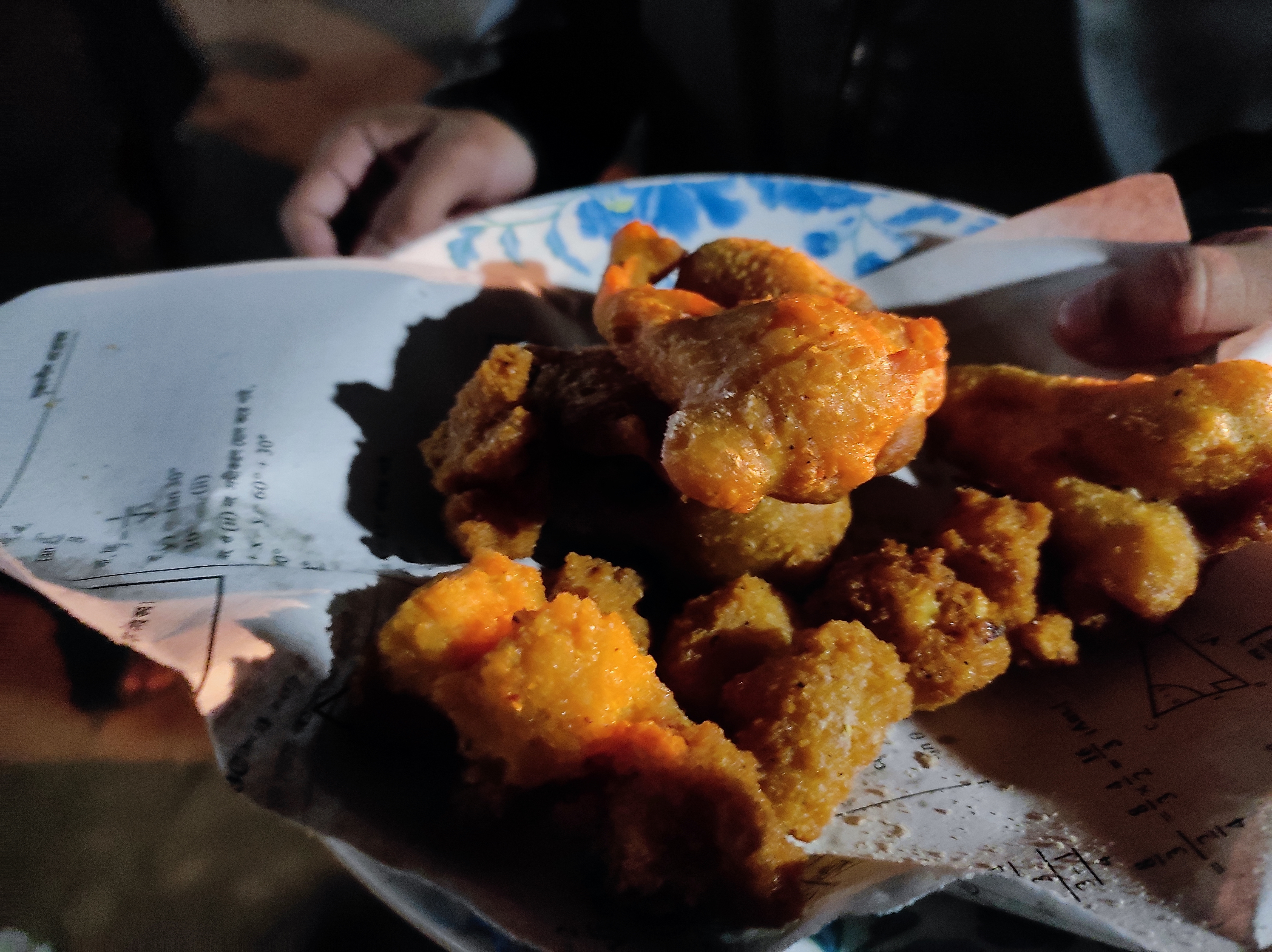 Today in the evening I called my friend and came to our area. We go out to have various discussions about studies and explore different things from food to places and famous places to eat. Anyway today we were ready to have some fried food and its very tasty in our country. Our farm items today were mushroom chops, egg chops and some dal crackers. We took our portions and they were very tasty.