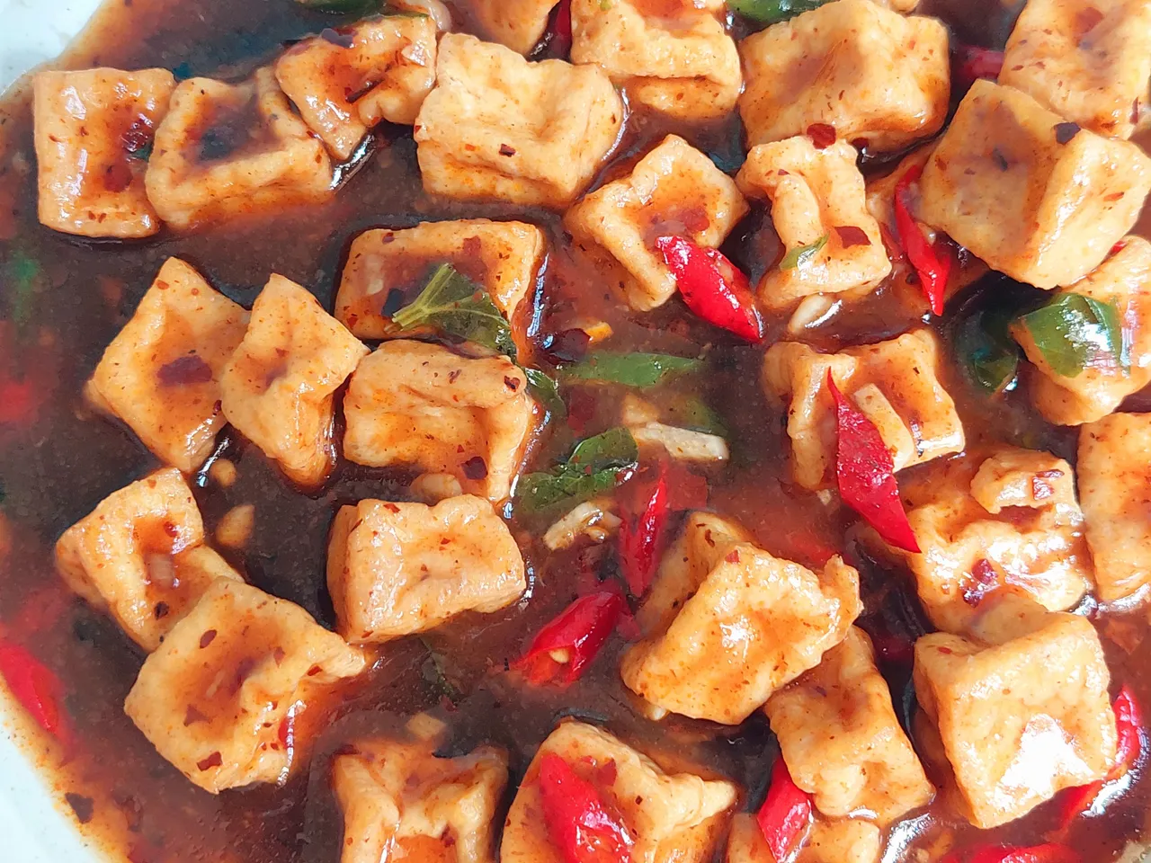 The habit of enjoying tofu here has made me wonder how I can turn tofu into a super dish. Well, I don't want to just fry it this time. I want to make tofu with a spicy, sweet, savory, and soupy sensation. It will definitely be delicious and can be enjoyed anytime with these simple ingredients. In my opinion, a dish like this with gravy and cream is best enjoyed hot, especially during the winter. I'm sure it will become a favorite menu item for many people.
