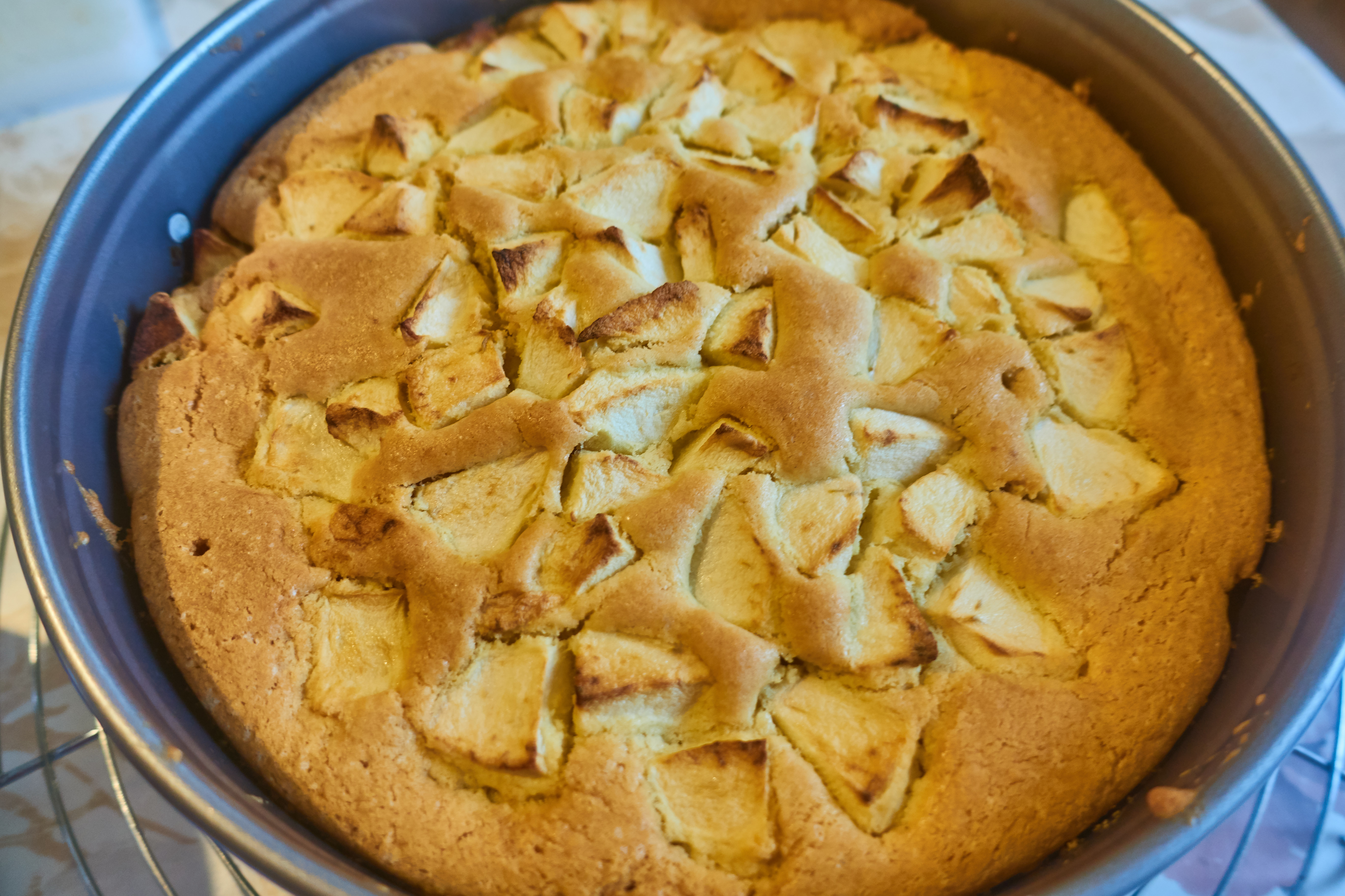 Detach the apple pie from the baking pan and let the cake cool down before serving it to your loved ones with coffee.