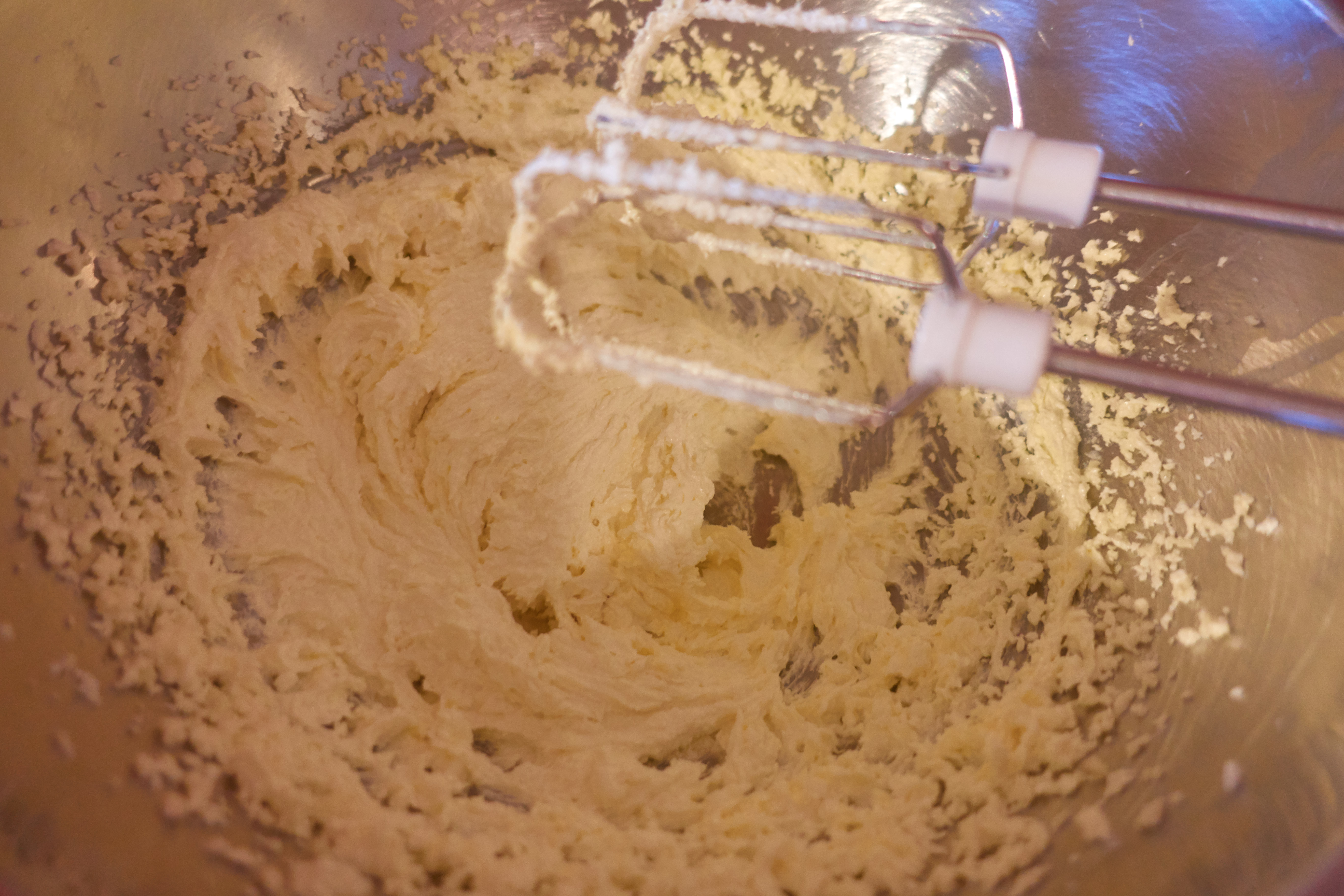 Beat the butter, sugar, salt, vanilla extract and butter flavor until frothy.