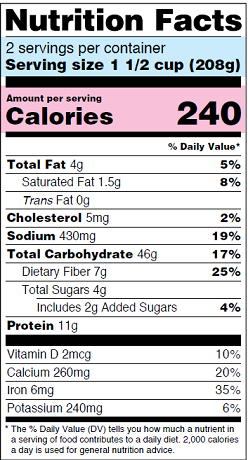 “*The % Daily Value tells you how much a nutrient in a serving of food contributes to a daily diet. 2,000 calories a day is used for general nutrition advice.”