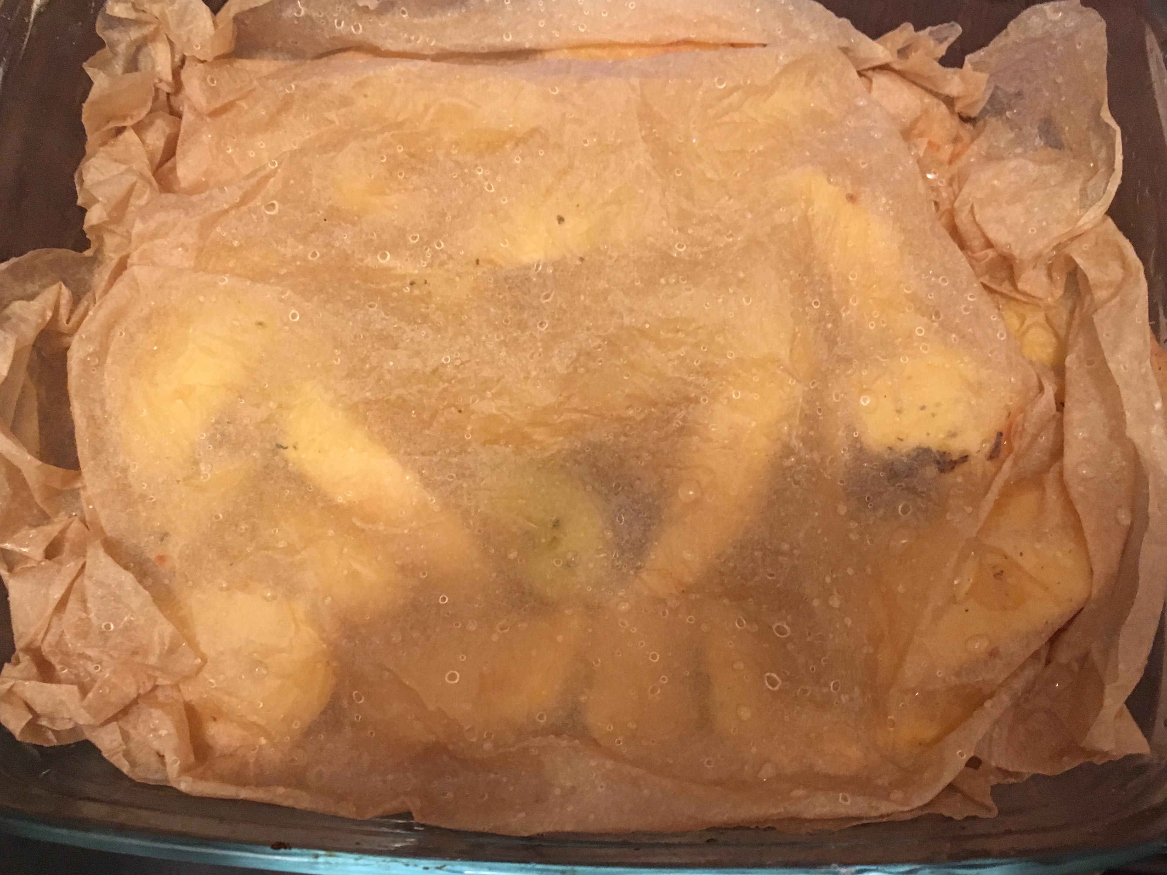 Cover with a wet parchment paper instead of aluminium foil, it's way healthier. It will look something like this: