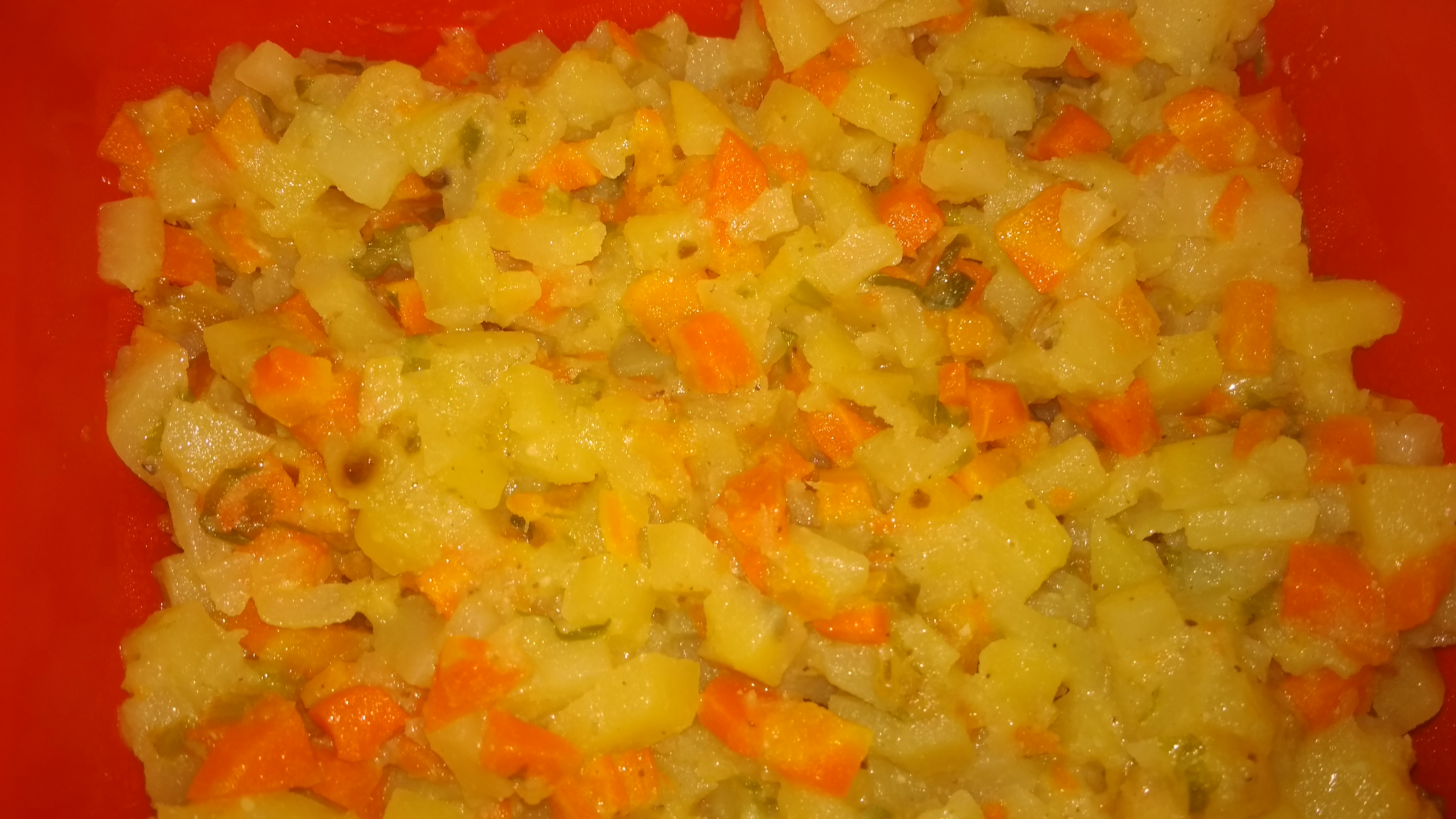 Ini adalah menu untuk isi dari risol yang Terdiri dari kentang, wortel, dan beberapa menu lainnya.