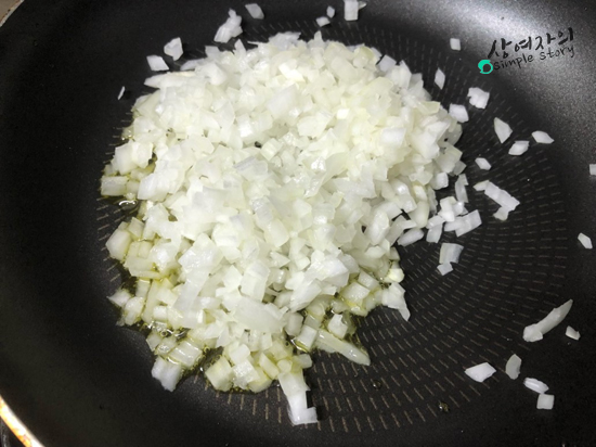 하나. 양파의 반은 다져서 팬에 기름을 두르고