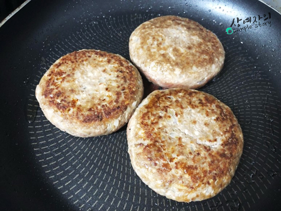 셋. 예열한 팬에 기름을 살짝 두른후 함박을 넣고 잘 구워주세요~