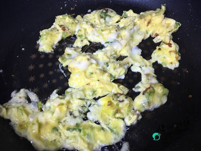 셋. 달걀을 넣고 볶다가 다 익을때쯤