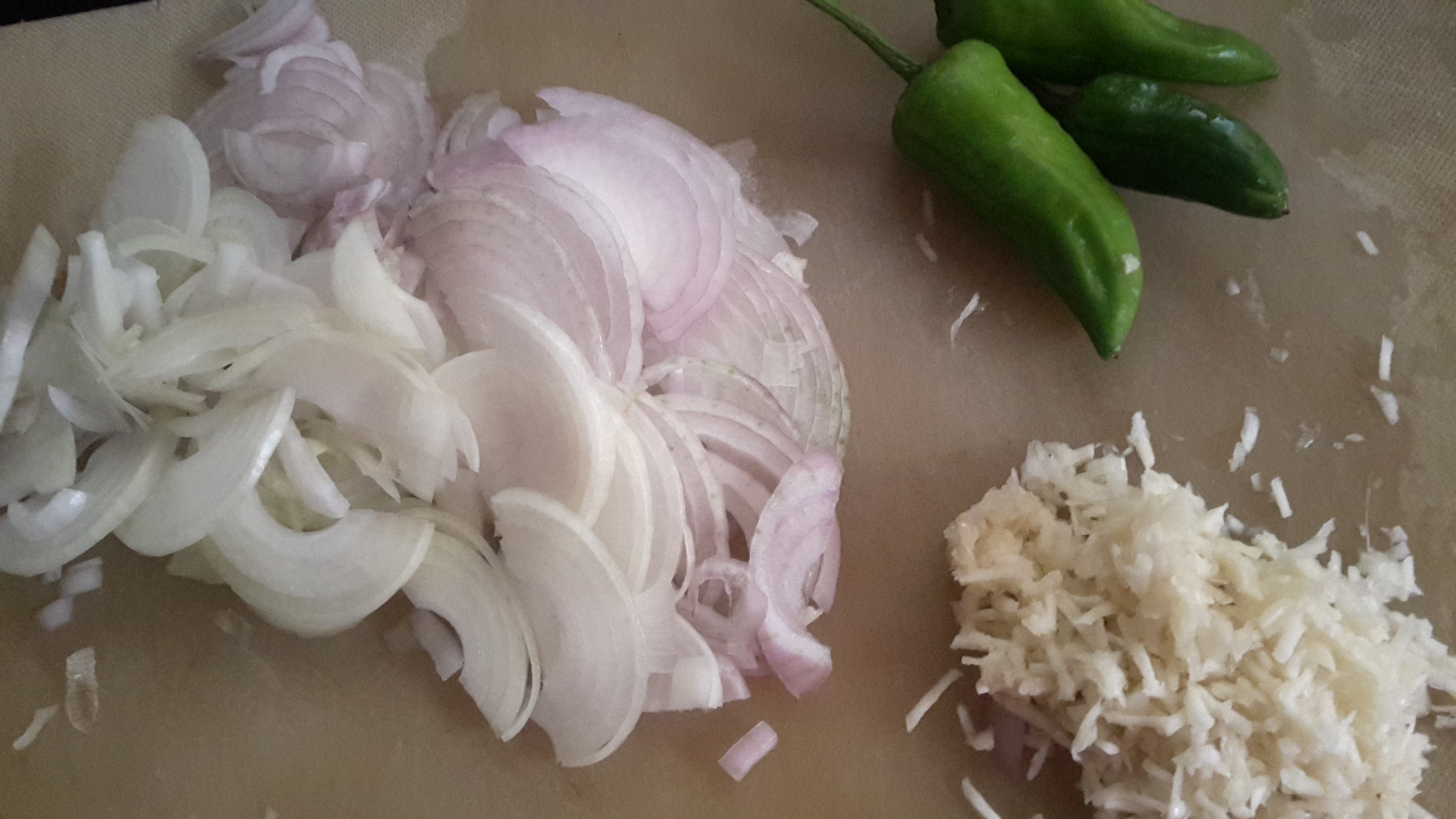 cut medium size onion and chop 3 to 4 garlic cloves