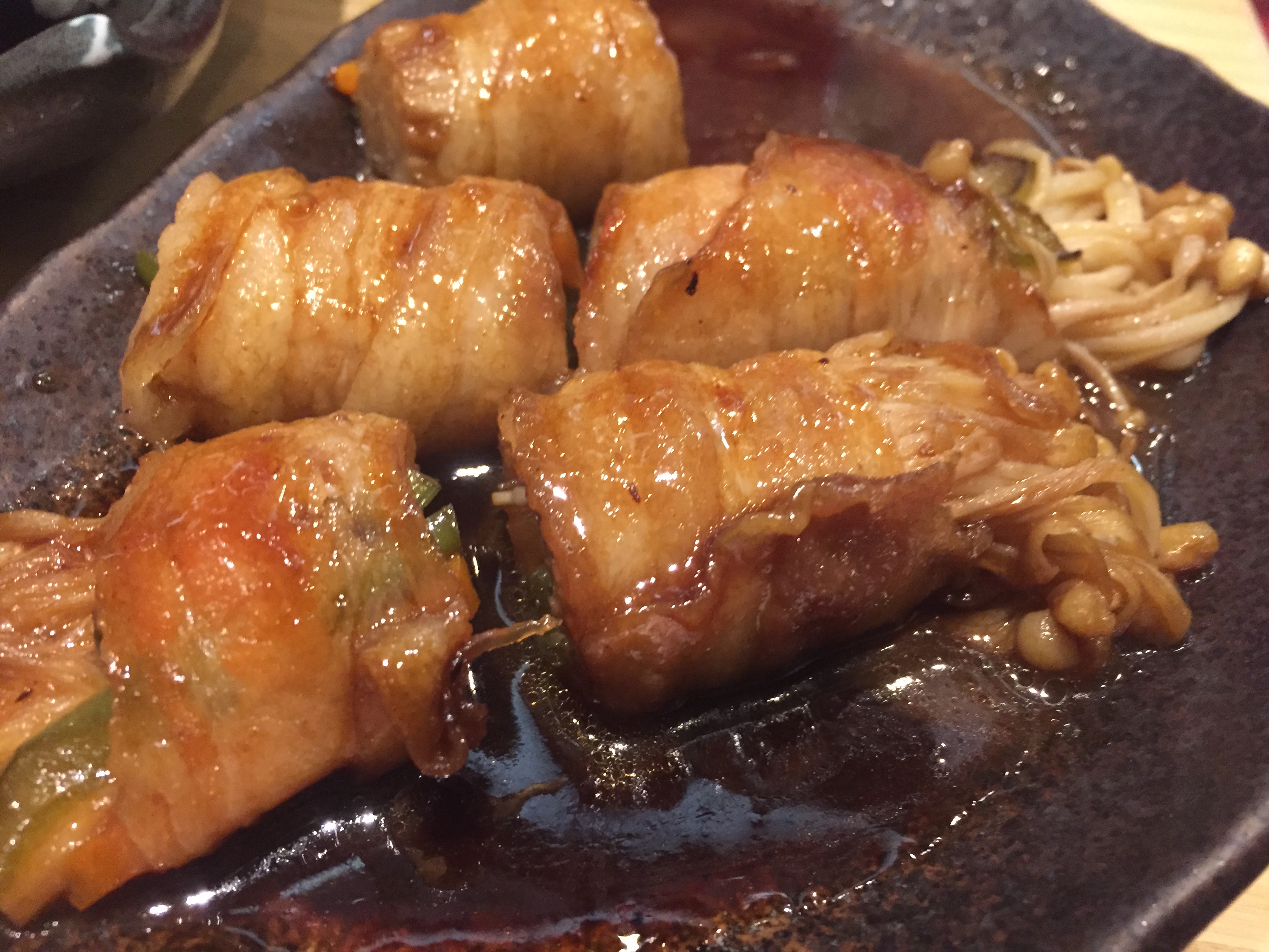 This was one of the dishes we ordered at a Japanese restaurant in Nex. I love enoki mushrooms and I love bacon. Put them together and grill it. Wow!