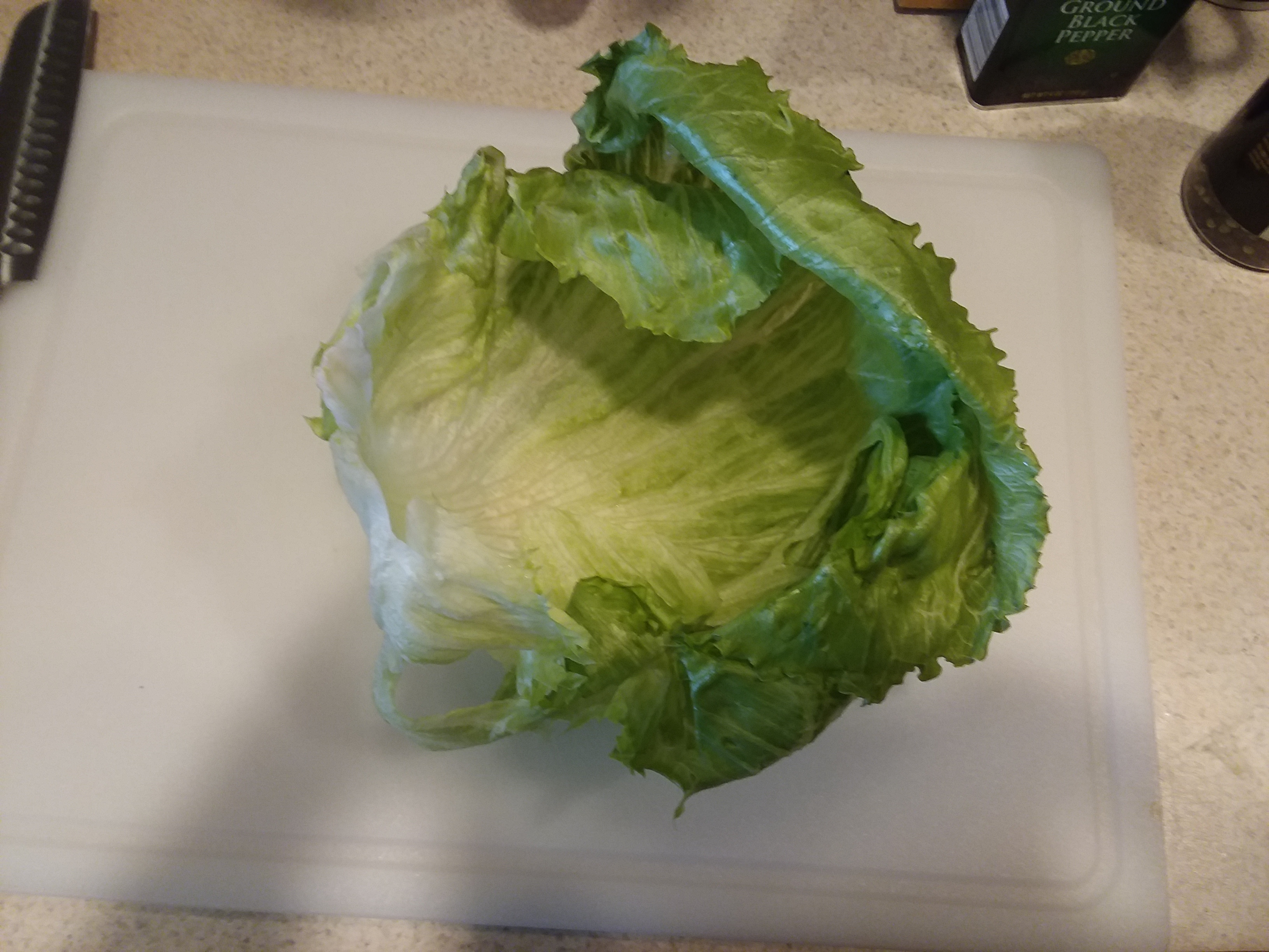 I started out with iceberg lettuce. Any type of lettuce will work. just use enough and overlap the leaves so that there are no gaps.