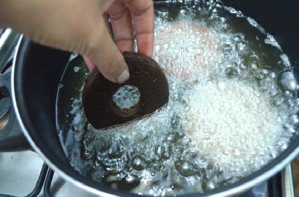 • In a frying pan with hot oil, start to fry the donuts on both sides without letting them burn.
