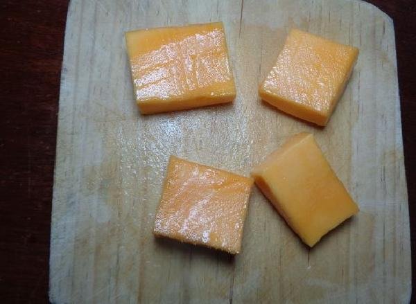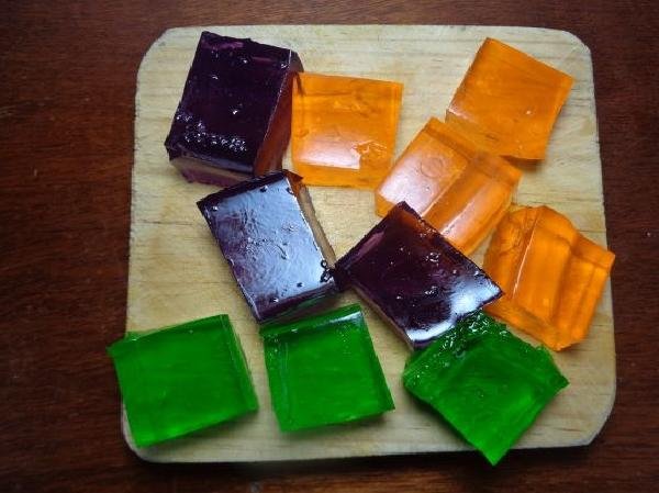 • The gelatin is removed from its mold with great care, and with a knife it is chopped into cubes with approximately 2 centimeters on each side.