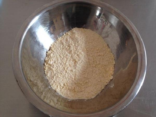 • Start by mixing the flour with the butter in a large container until the consistency is sandy.