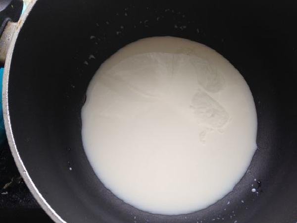 • Then pour the milk into a pot and place it on the fire with a little vanilla essence.