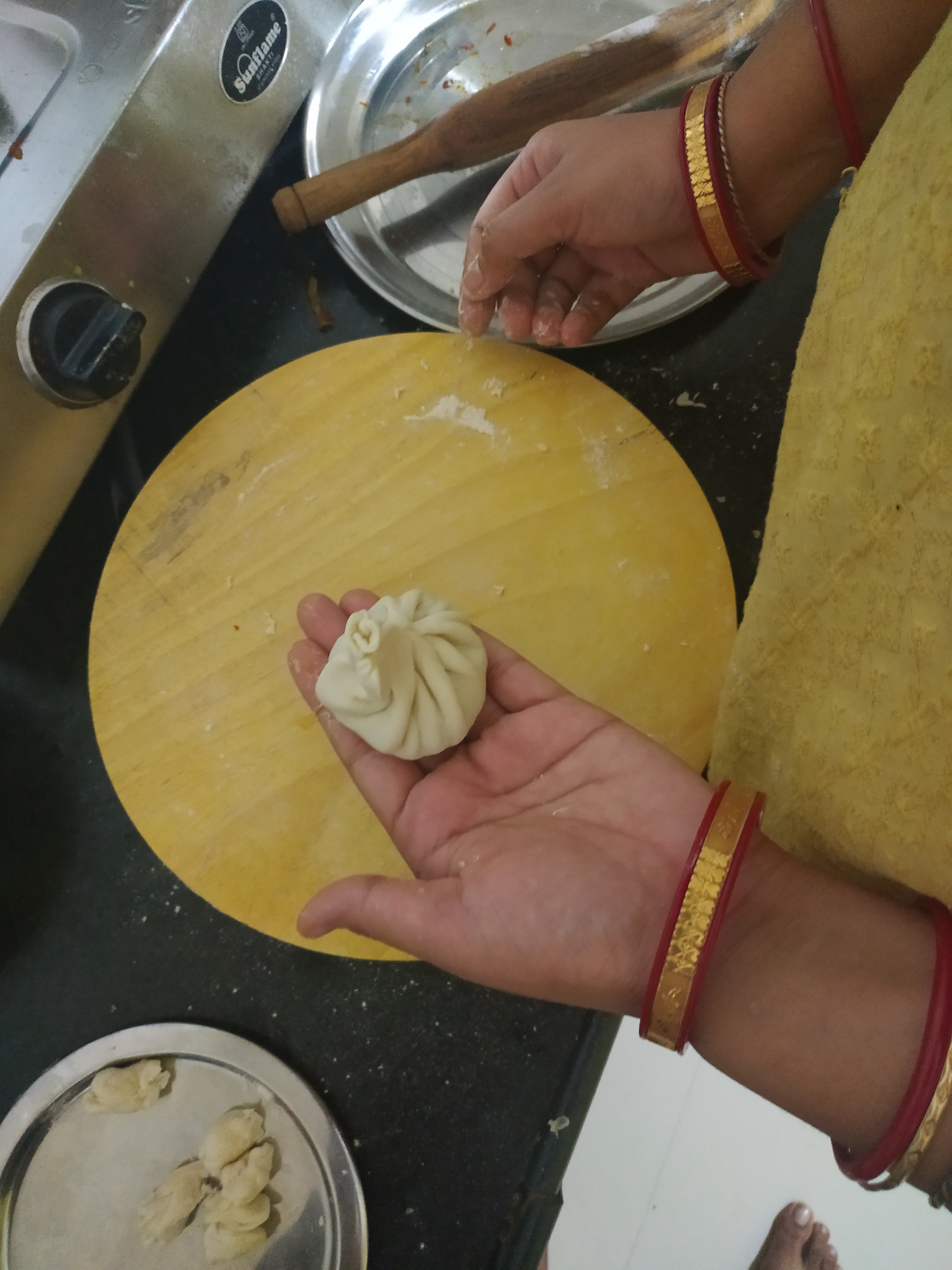 It's time to stem them. You can use egg maker for this, but I don't have that now. Please look at the utensil where I have kept the momo.