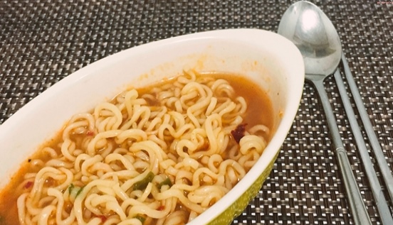 더욱더 식감좋게 익어요.) - 라면이 적당하게 익으면 미리준비한 대파를 같이 넣고 불에서 내린다.