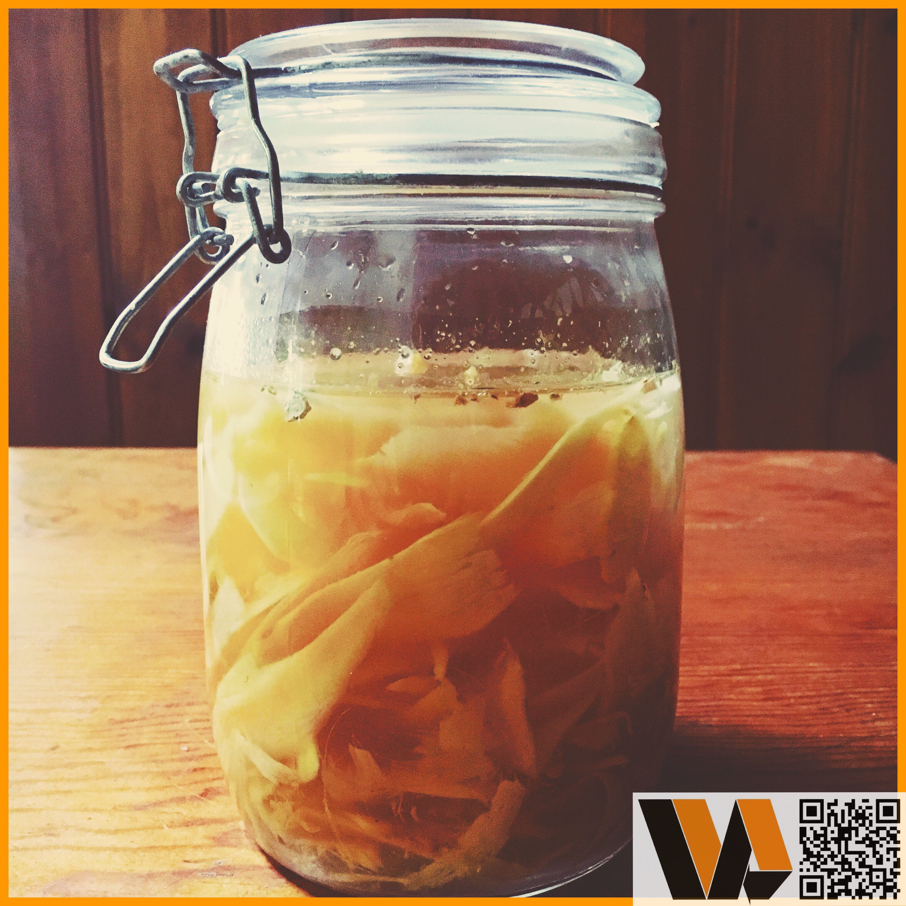 5 Loosely pack the strained ginger slices in a sealable jar and pour the vinegar mix on top.
