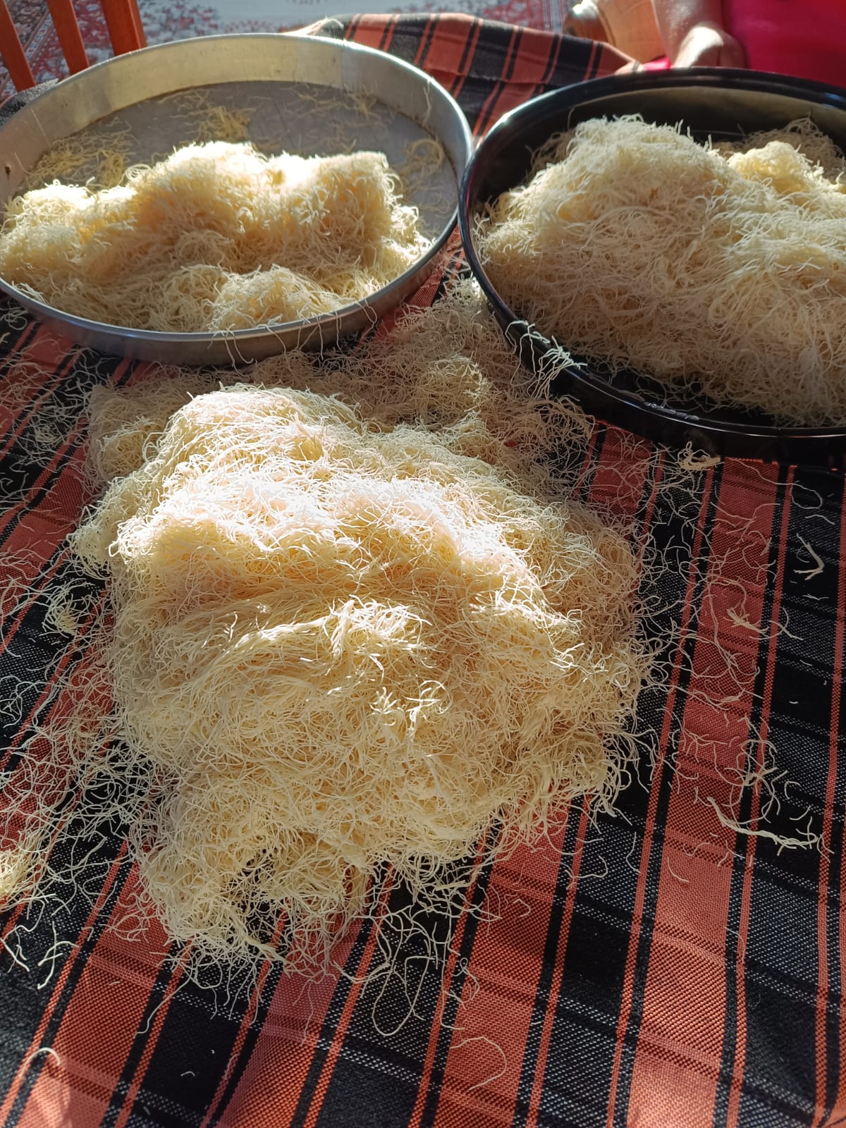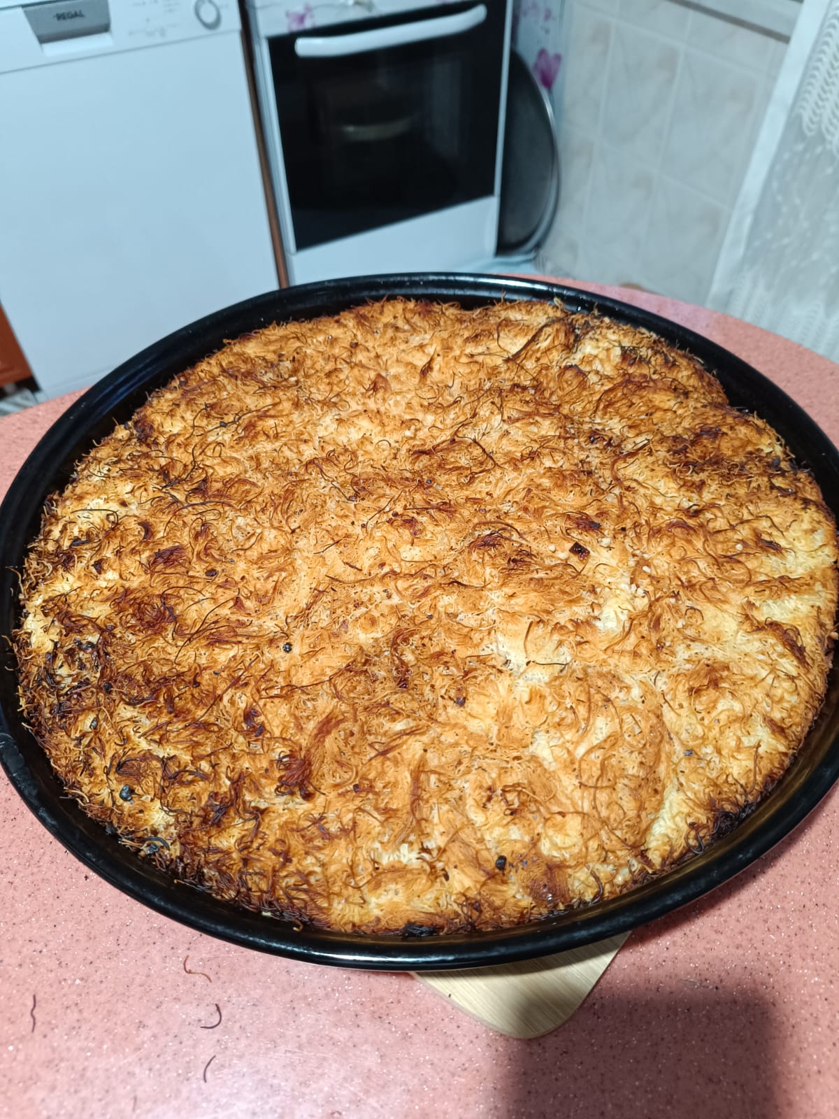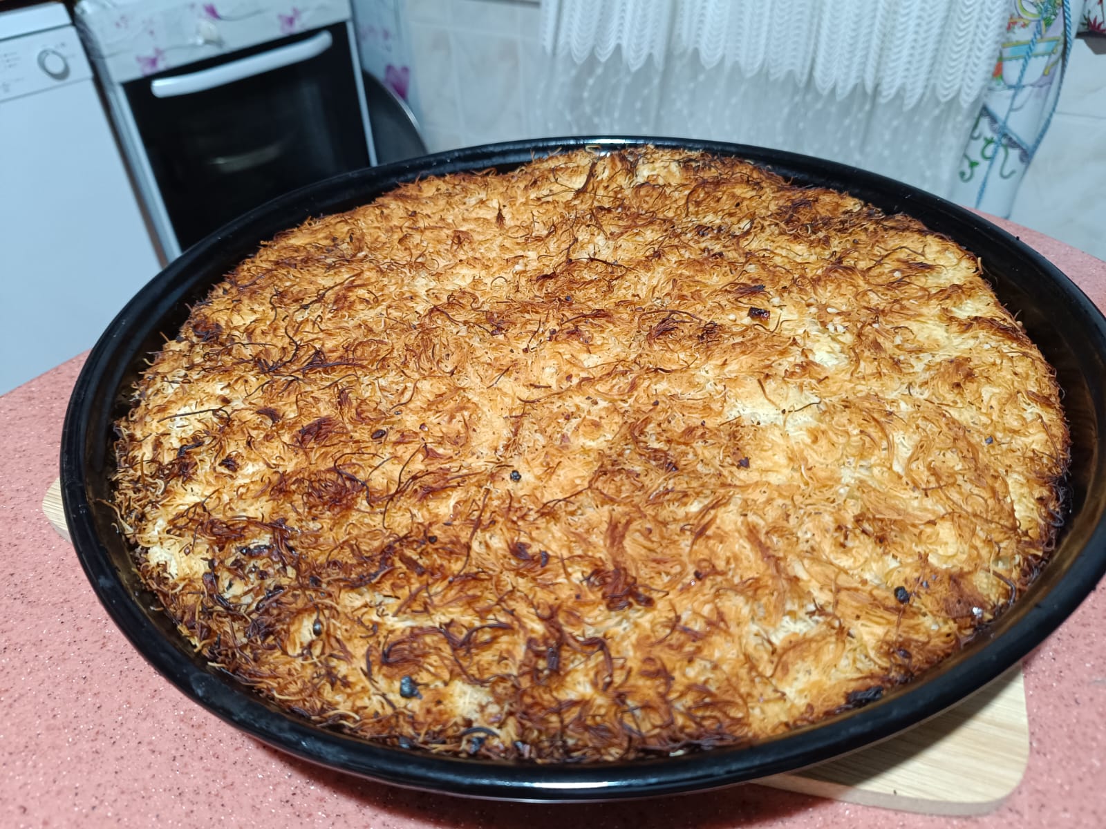 Today, in my free time, I wanted to try making a dessert. Since I had enough time, I chose a slightly more challenging one. The dessert I made is called Tel Kadayıf. Its main ingredient is a dough that comes in fine, thread-like strands. Since making this at home is quite difficult, we usually buy it from the store.