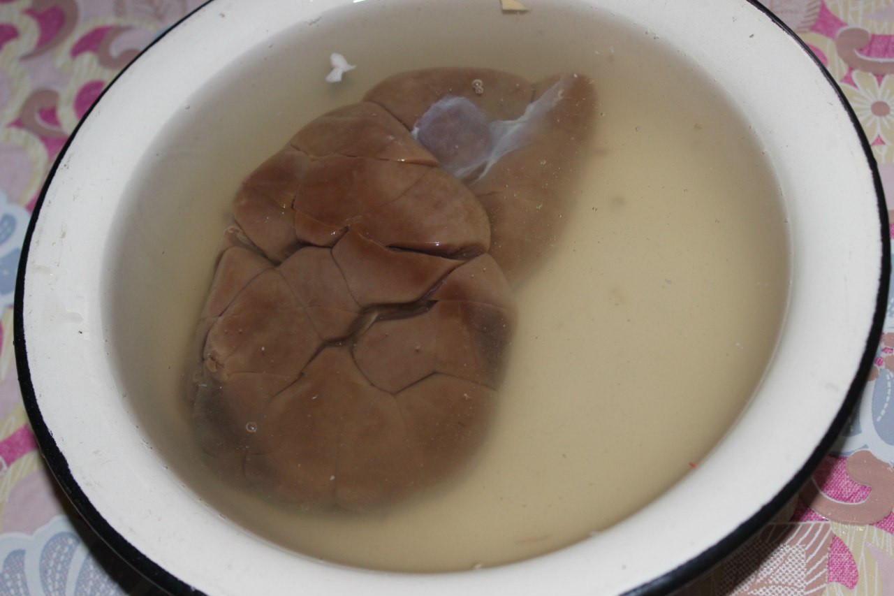 The kidneys fill with cold water for 3-3. 5 hours, keep in a dark place, a couple of times changing the water to remove the characteristic odor. Sent kidneys to the pan, cook until boiling, and then change the water and cook for about an hour on a slow fire until tender, removing the scum.