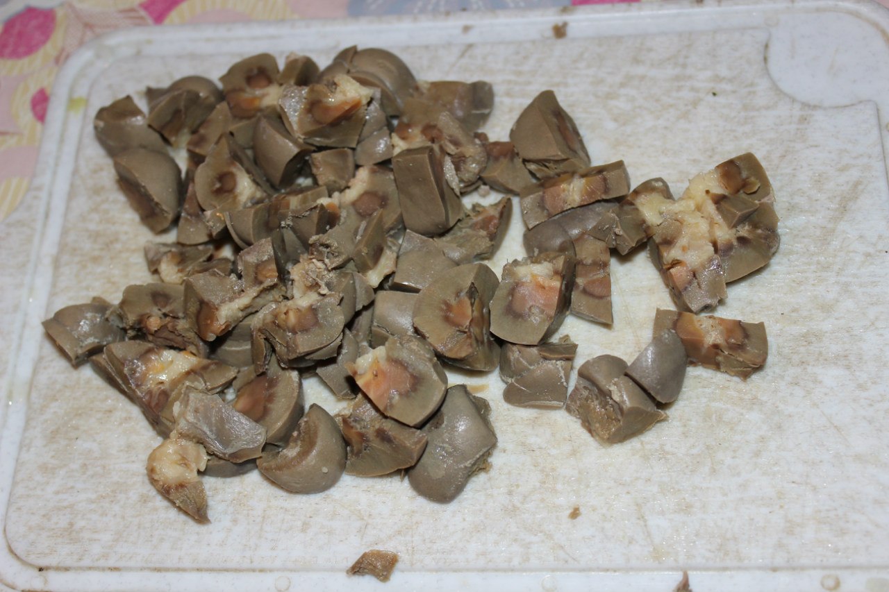 Cooked kidneys, cut into small pieces.