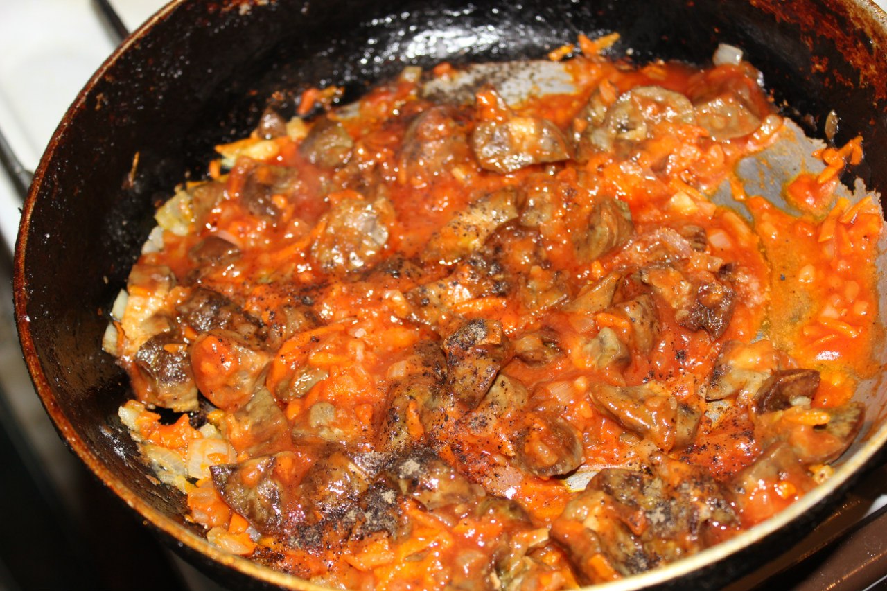 Adding to the kidneys onions and carrots, cook until Golden brown onions.