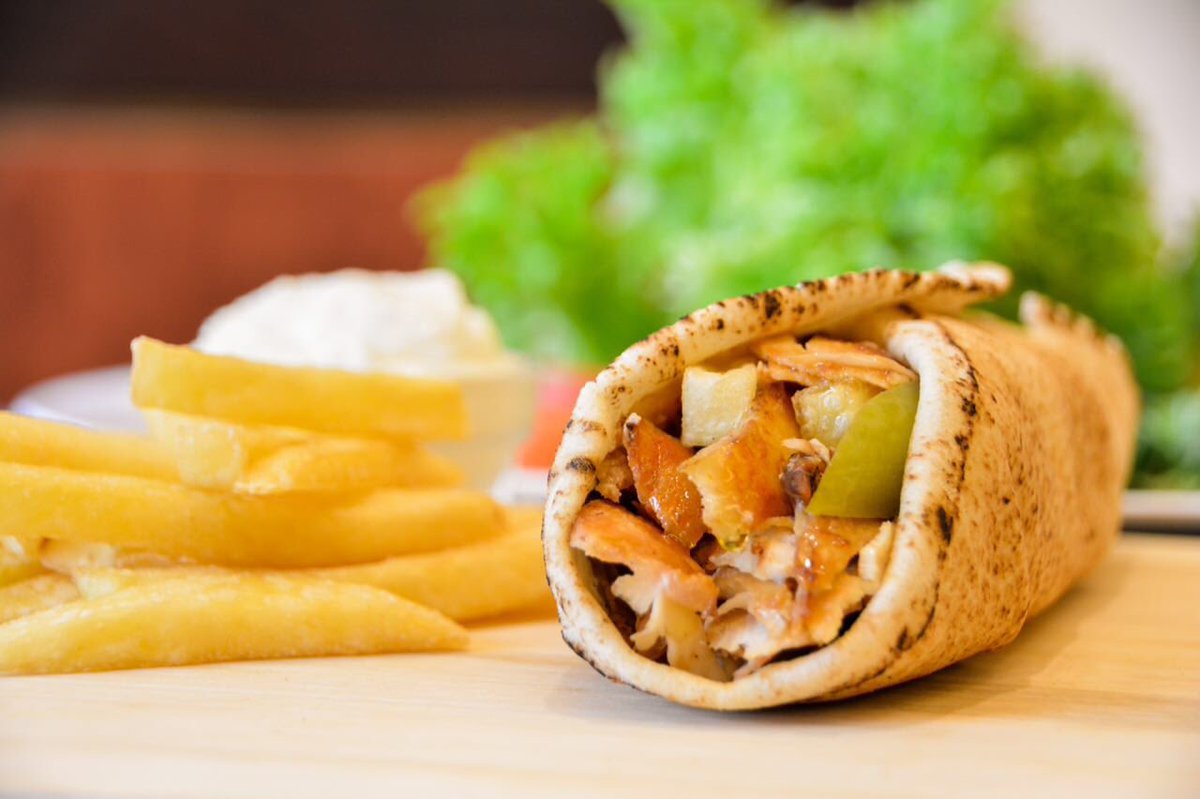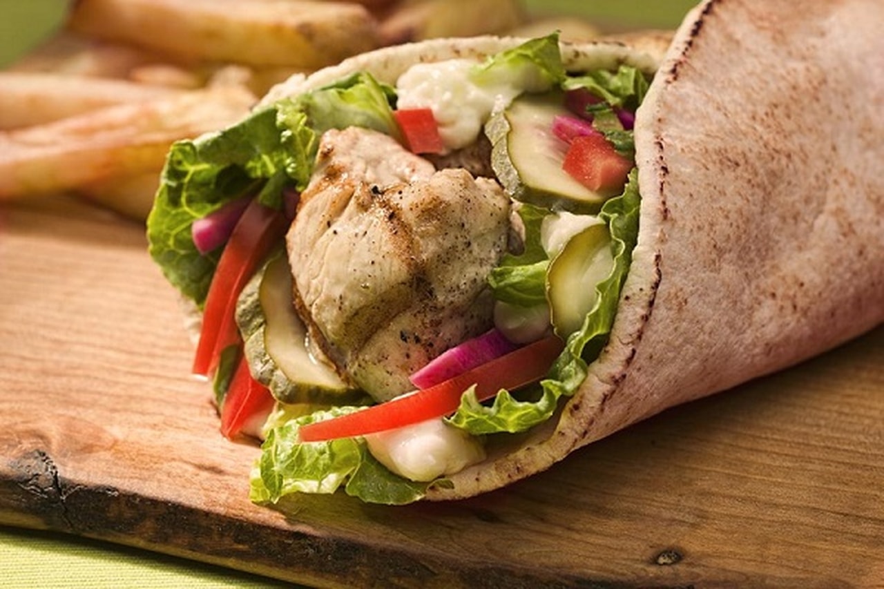 2 : To make a wrap, get a piece of flatbread and smear with Yoghurt Sauce. Top with a bit of lettuce and tomato and Chicken Shawarma. Roll up and enjoy!