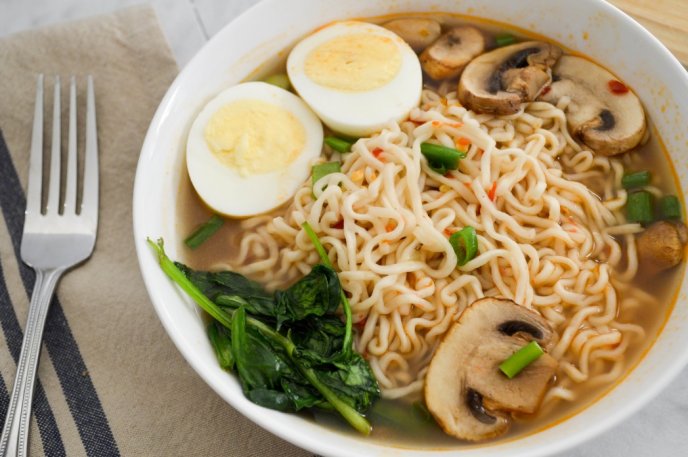 El ramen es un platillo típico japones que consiste en un caldo suculento acompañado de fideos de trigo, cuyo color amarillo proviene de la adición de huevo.