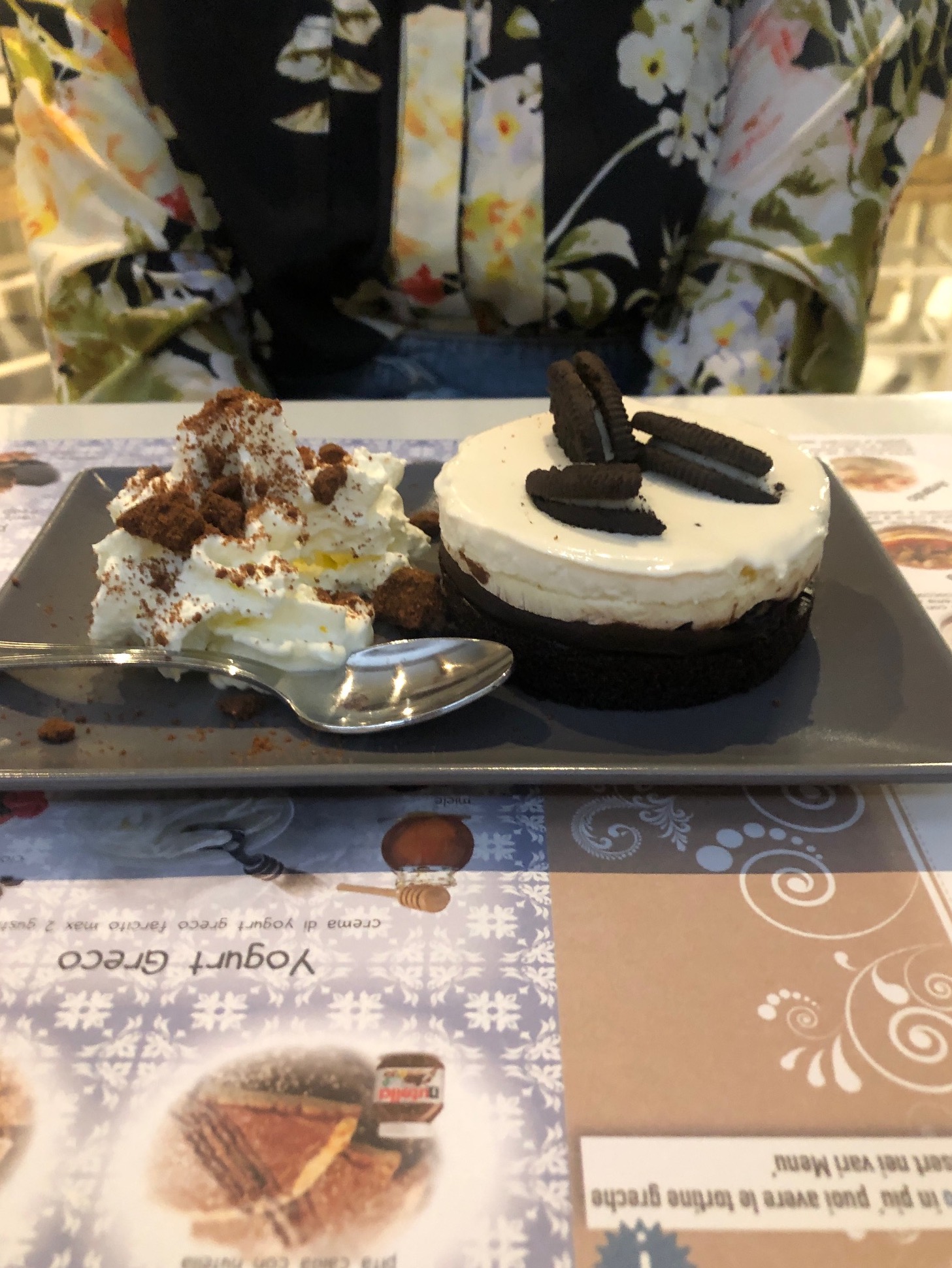 As I always want to specify for me a meal is never worthily complete without an excellent dessert. So then I will also spend two words on the dessert I have chosen: a white chocolate cake with Oreo biscuits base.