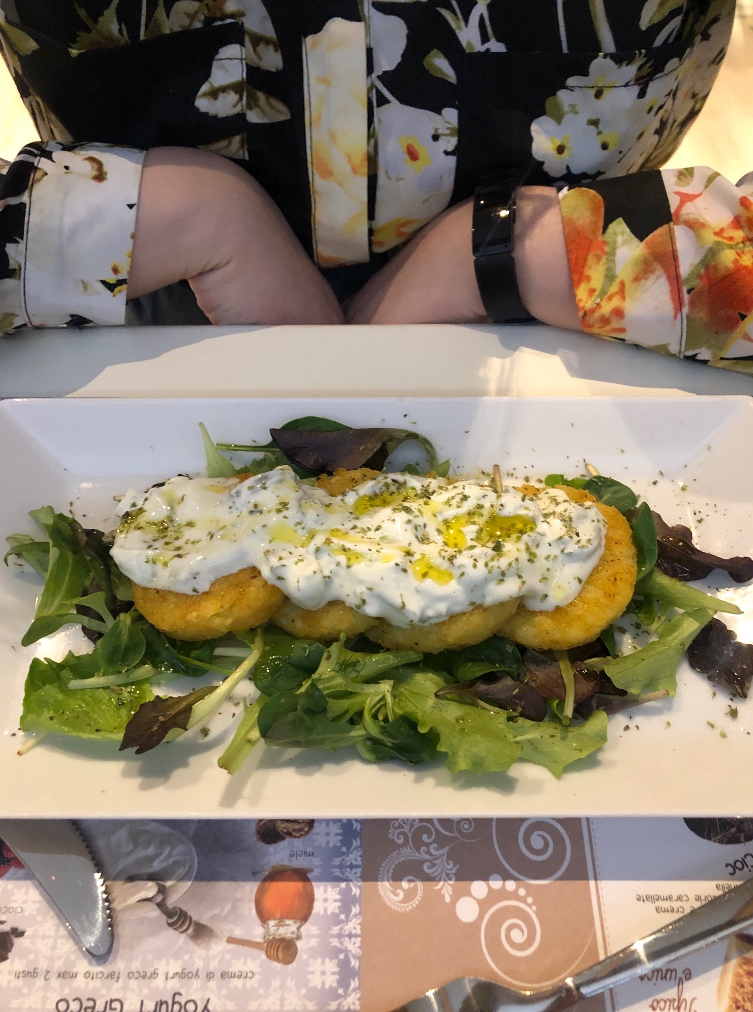 In questo caso l'ho trovata particolarmente buona, appena preparata, fatta con materie prime di ottima qualità. Anche le polpette di patate erano tutto sommato buone anche se sono convinta che la marcia in più a questo piatto fosse data proprio dalla salsa tatziki.