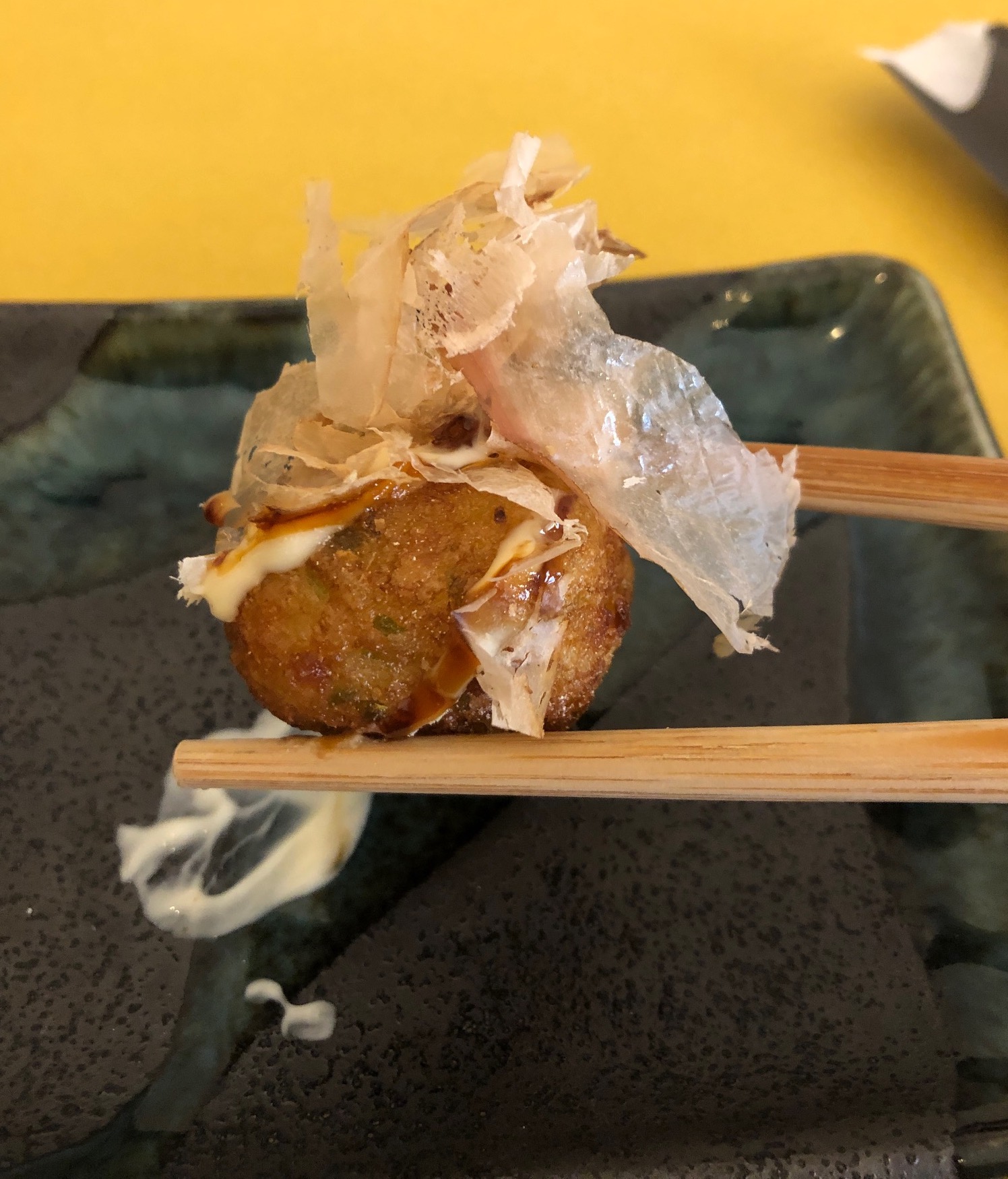 Per cominciare ho ordinato un piccolo antipasto, un porzione di takoyaki, le famosissime polpettine di polpo giapponesi.
