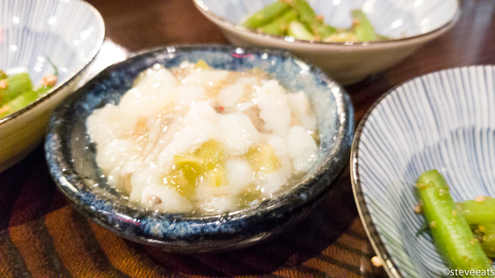 Meiji was actually the place I first tried this dish, and it instantly become one of my favorite appetizers. The octopus is fresh and soft and there’s a strong kick from the wasabi that’ll probably clear your sinuses. The flavor and crunch from the wasabi pickles really match well with the raw octopus and creates that textural balance I’m always looking for in dishes. If you’re a fan of sushi and raw dishes, you will definitely love this.