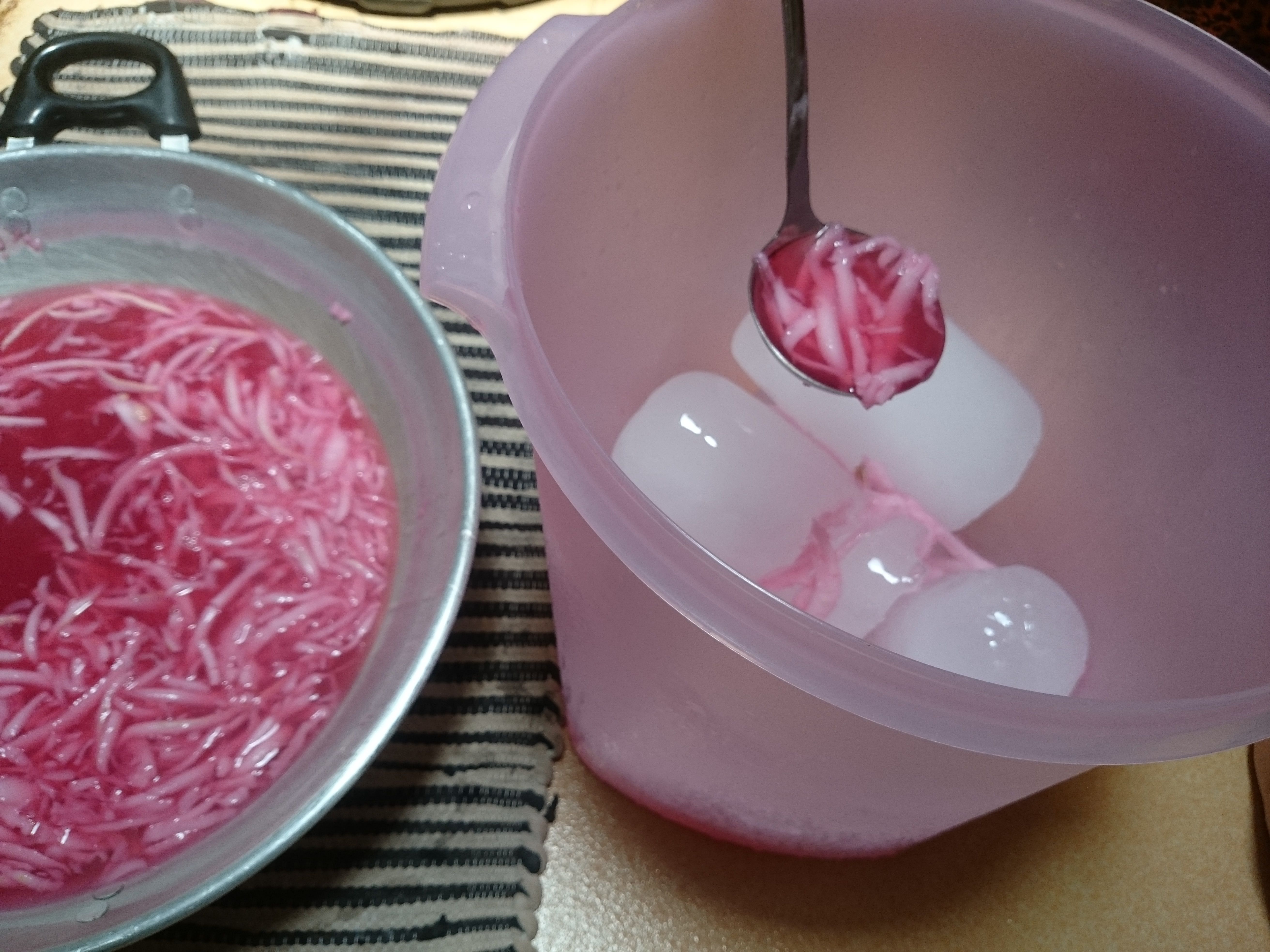 - Jika sudah benar-benar masak lalu tunggu sampai sedikit lebih dingin agar ketika dituangkan kedalam es batu tidak lansung angkat dari panci dan tuangkan kedalam wadah lain yang sudah disiapkan, lalu tunggu beberapa lama agar sedikit dingin, baru kemudian tuangkan es batu kedalamnya.