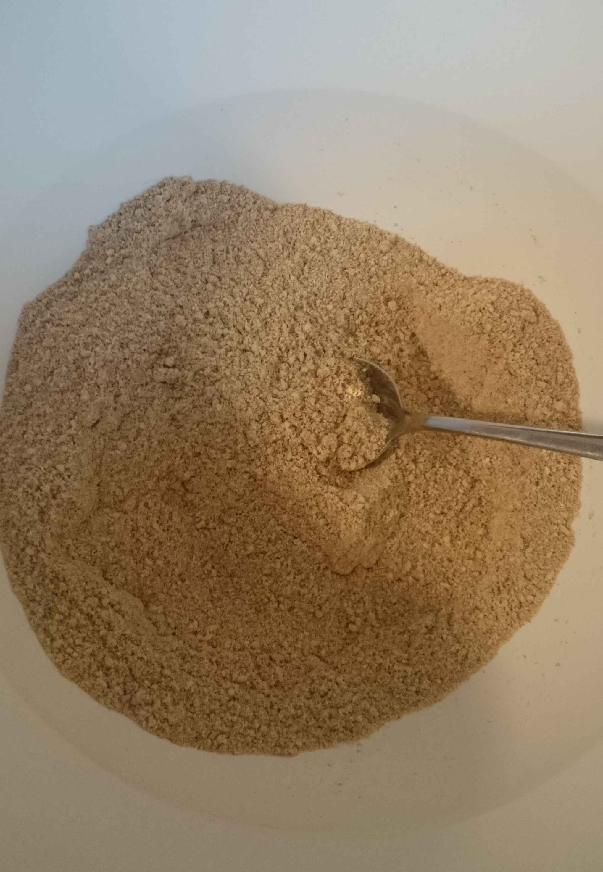 And while your yeast is slowly waking from its slumber, you mix all the dry ingredients together in a bowl. Then add the yeast-honey-water and mix again, thoroughly.Take 5 eggs and separate the yolk from the whites, put the egg whites into the bowl. (If someone figures out something smart to do with the yolks, let me know). Then, again, mix that dough!