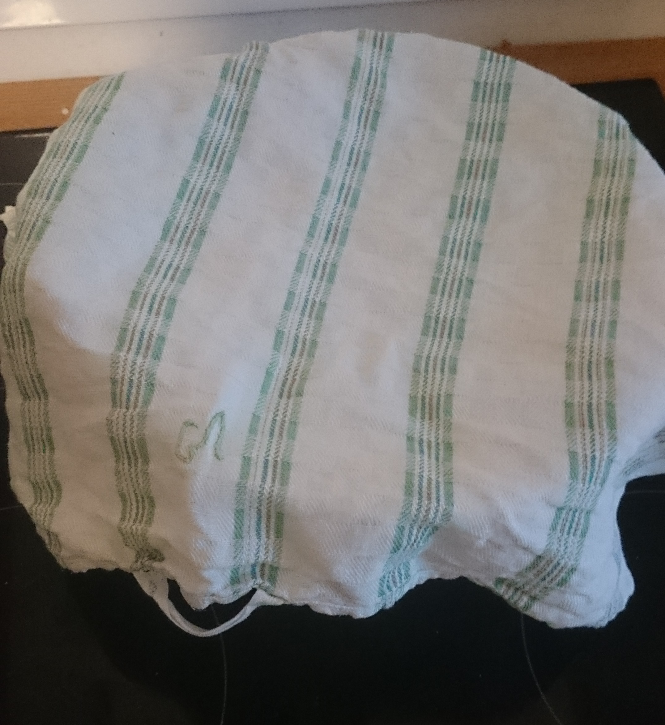 ... knead, and roll it into a ball! Then our precious dough clump has to rest, so we cover it with a clean towel and put it in a warm spot (30°C would be splendid!) for about 2 hours, so the yeast can do its magic and blow the dough up a bit. It won't rise as much as you might expect if you've made normal bread before, but there will be a significant difference.When the 2 hours are over, knead the dough again (you should hear air escape, that means the yeast did good) and form a dough. Form a loaf and let it rise again while you pre-heat the oven to 180°C (circulating heat). You should also place an oven-proof container with water at the bottom of your oven. The humidity will help you get a nice crust.