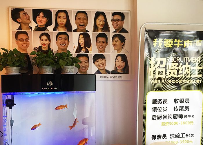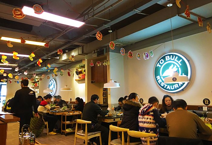 今天我想带大家去一家非常有创意的火锅店,叫做我要牛市。说起牛市,大家一定想到了电子币里交易的K线图,在中国“牛市”不仅只指市场行情普遍看涨,出现前景乐观的长时间大升市。也指牛肉市场,那些不管中式西式的美味牛扒牛杂牛骨牛肉。现在我们就走进鲜牛火锅餐厅,吃出一片牛市吧! “我要牛市”创新的把潮汕火锅和四川火锅的优点融合,鲜牛火锅就是采用手切牛肉的西式刀法,潮汕得鲜牛和川味鲜香锅底组合而成。还没进店里,就看见临街的橱窗内,厨师们在切鲜红的牛肉,看得不少人流口水,相必也吸引了不少顾客走进店里。这家店的生意火爆,所以要排队才可以吃上,餐厅贴心的提供了水果饮料免费供给等位的顾客。店里热气腾腾,好热闹喜庆。还在黑板上讲解这家餐厅是怎么挑选牛肉的,精细到牛身上的每一个部位。店里提供wifi和手机充电的插座。