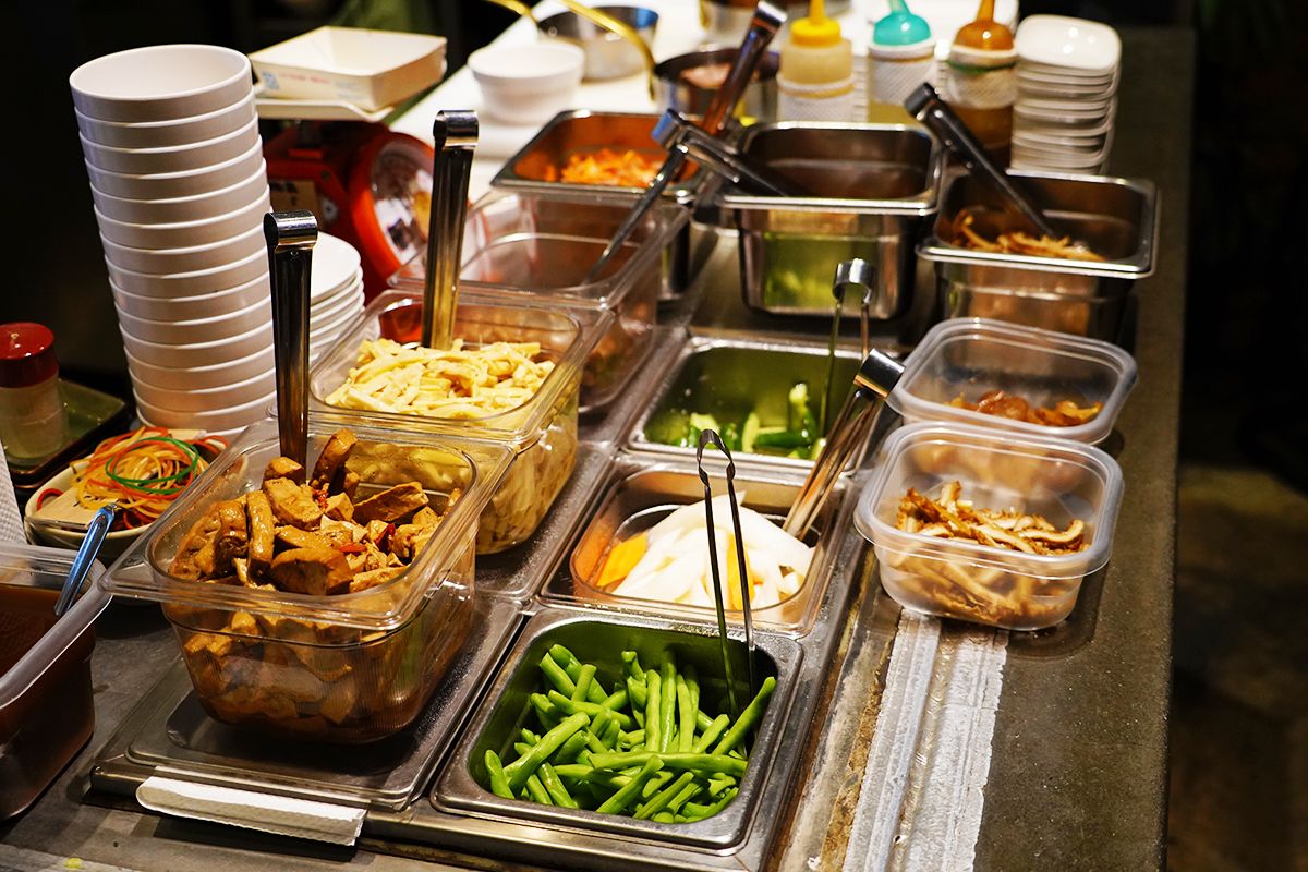 The cold dishes are pre-prepared and are at the end of the kitchen near the dining tables. Some restaurants even allow customers to serve themselves. Here, they are paid for at extra cost.