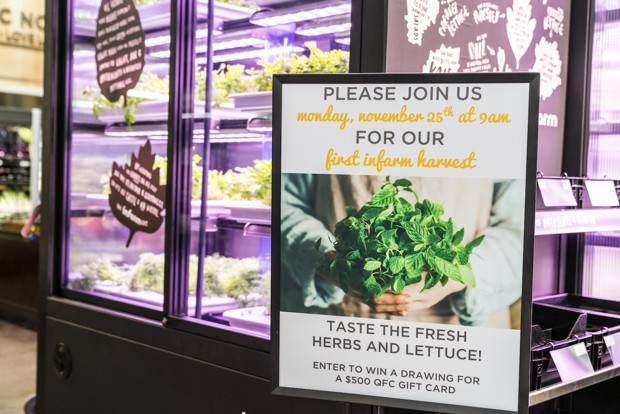 InFarm is a German startup that developed the mini-farms. The ones in the QFC stores are able to grow 9 varieties of lettuce and herbs.
