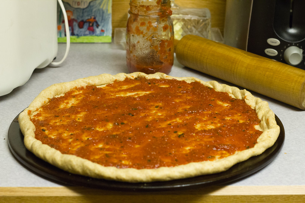 Oooooh the sauce... Flavorful *and* functional! Your pizza sauce is the middleman that links the flavors of your crust and your toppings, and will serve to keep the dish from being too dry as a whole. Your sauce is going to wash over everything else once in your mouth, so it's important to choose a sauce that compliments and brings together your pizzas overall flavor profile. The most popular pizza sauces are made with a tomato base and typically spiced with oregano, salt, pepper, or anything else, depending on preference and locale. Most popular doesn't by any stretch mean only, and if you get a little creative, you can substitute that monotonous tomato sauce for *literally any* sauce or even cream you can create! You've like heard of people using Barbecue sauce, Alfredo, even ranch dressing as a pizza sauce, but peanut butter? Custard? *Country Gravy?!?* You might think that sounds crazy, but stay with me. I might just introduce you to your new favorite pizza today...- The Toppings