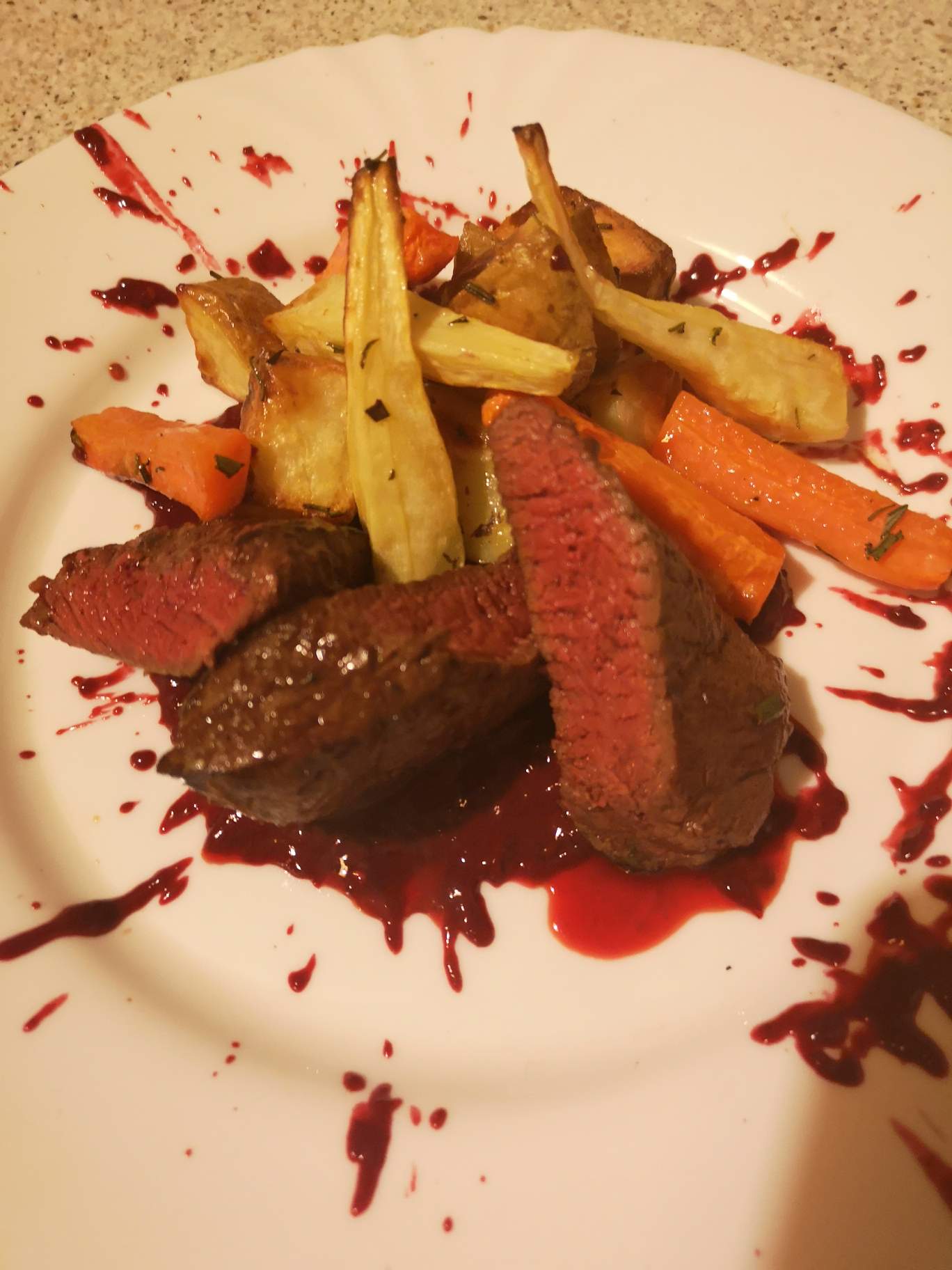 Venison steaks and forest fruits