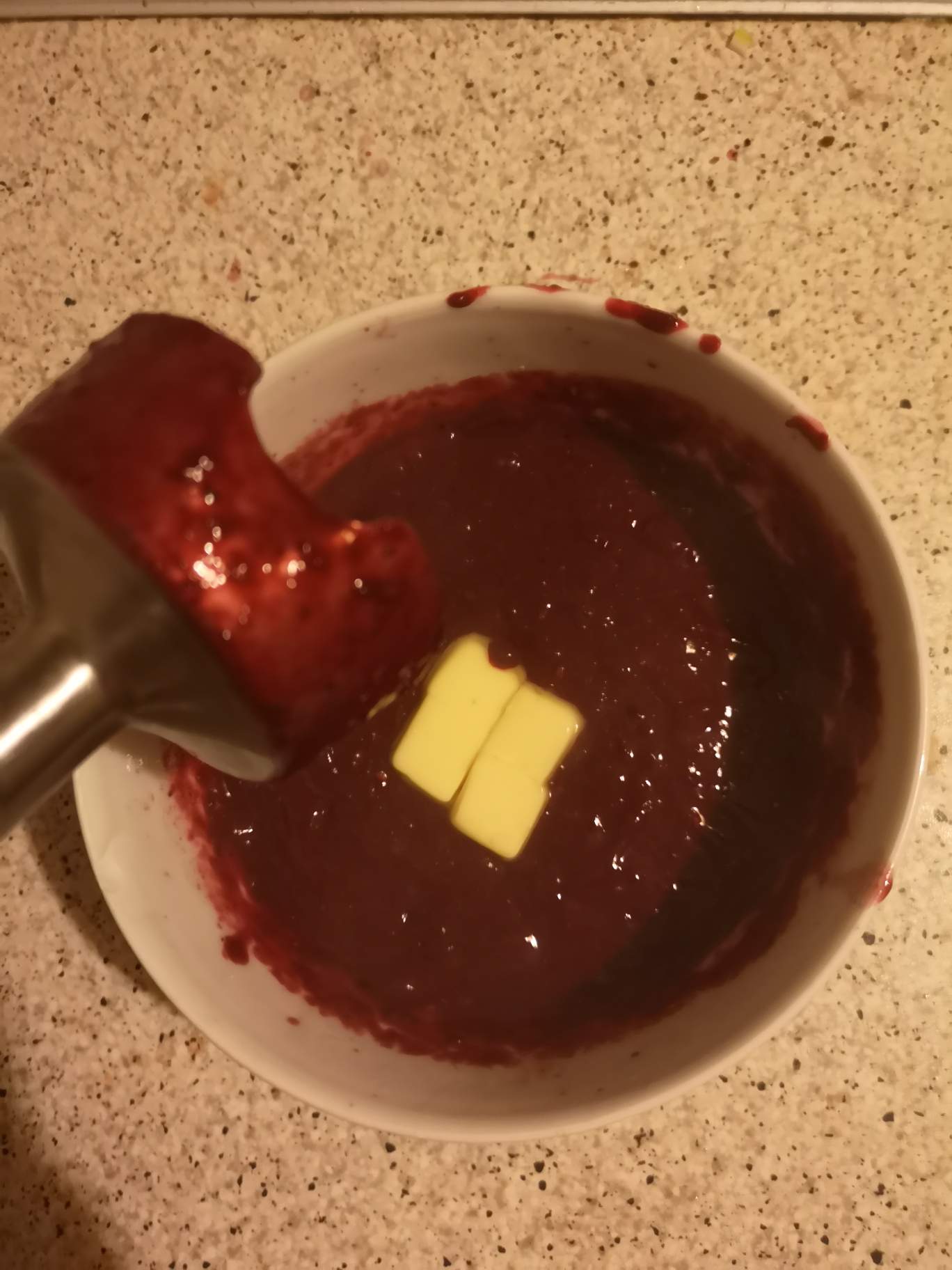 Now blend it with some cold diced butter, sieve it and leave it aside.