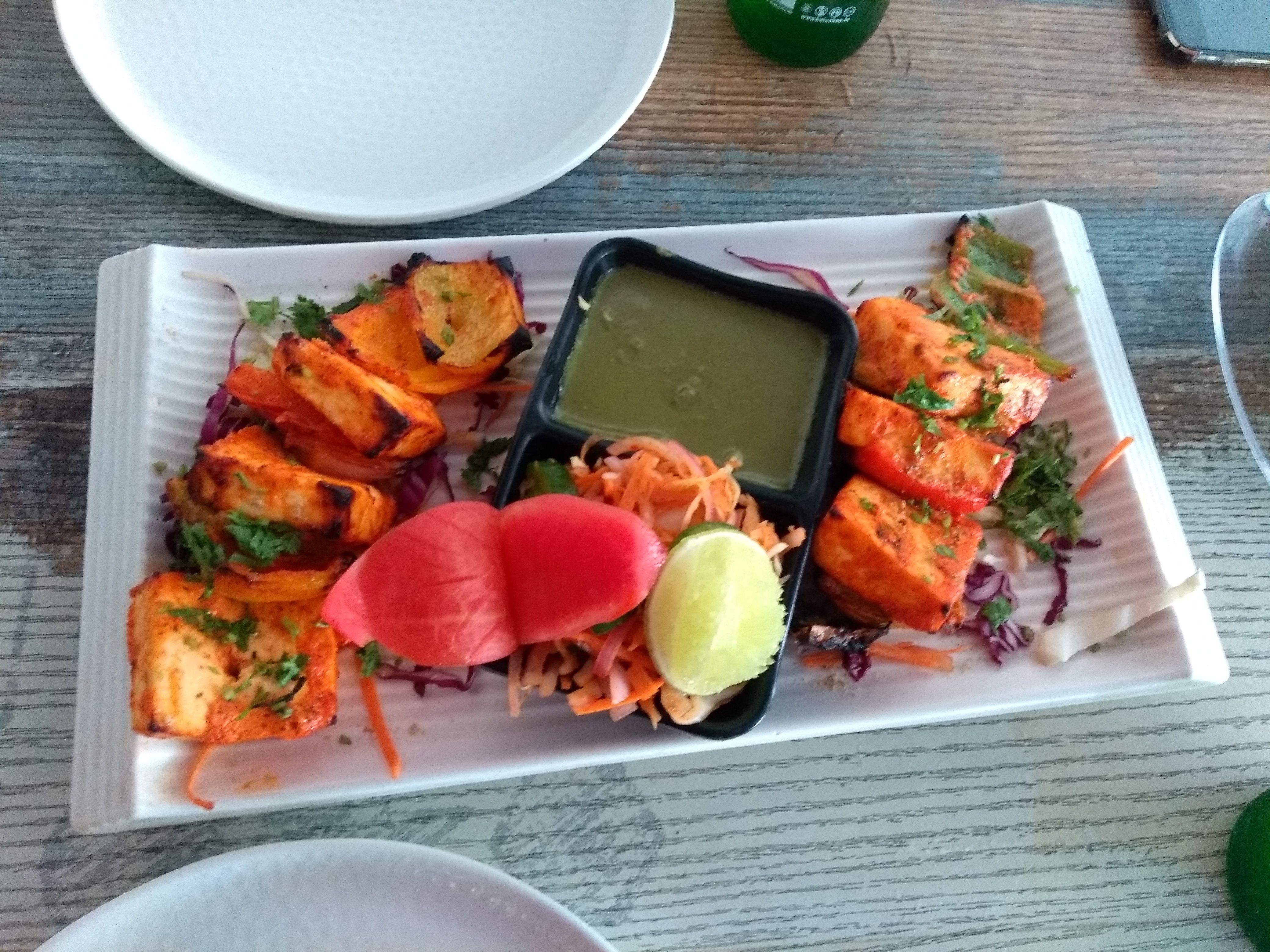 Paneer tikka:Cottage cheese with yogurt and kashmiri chilly