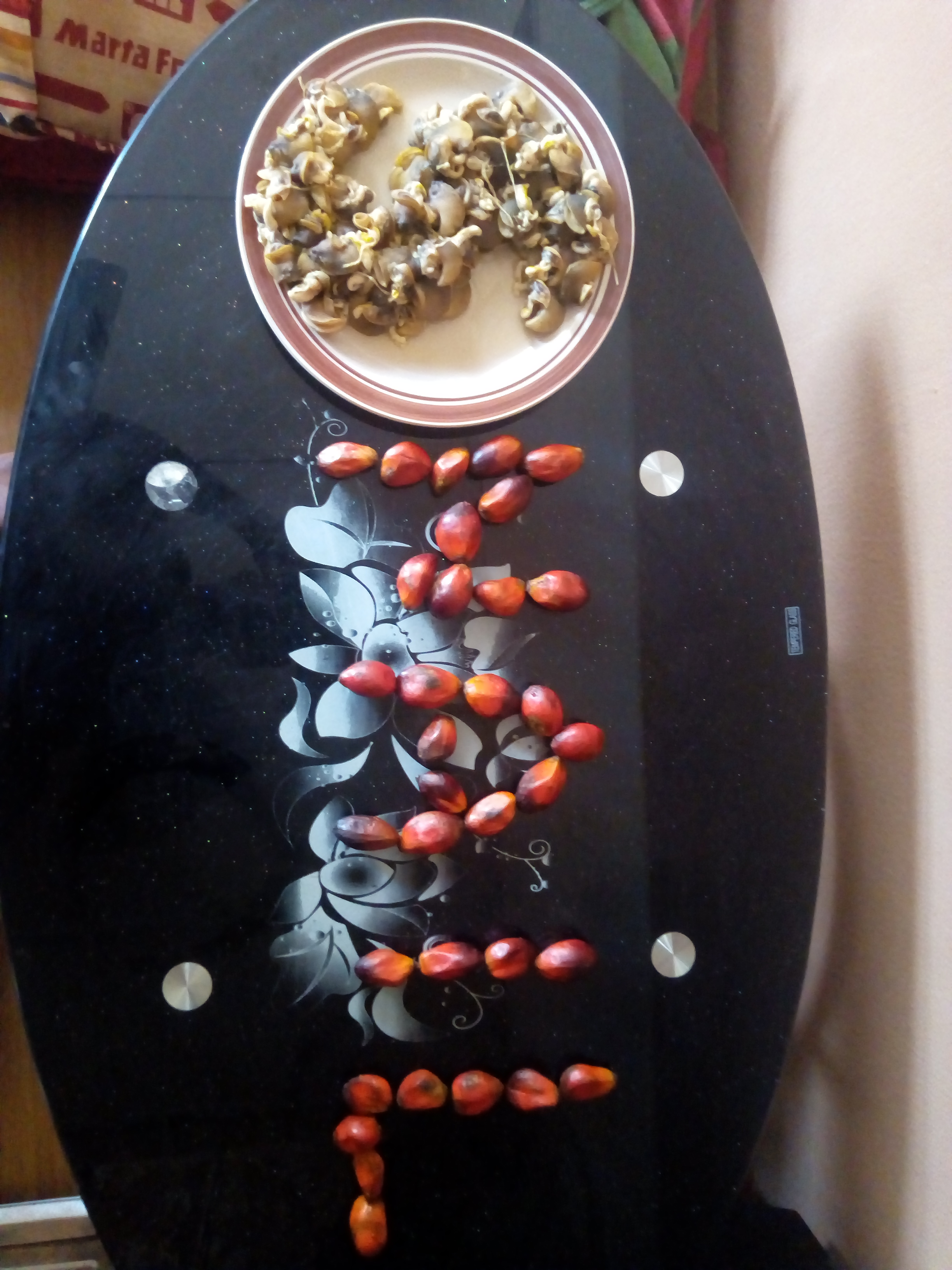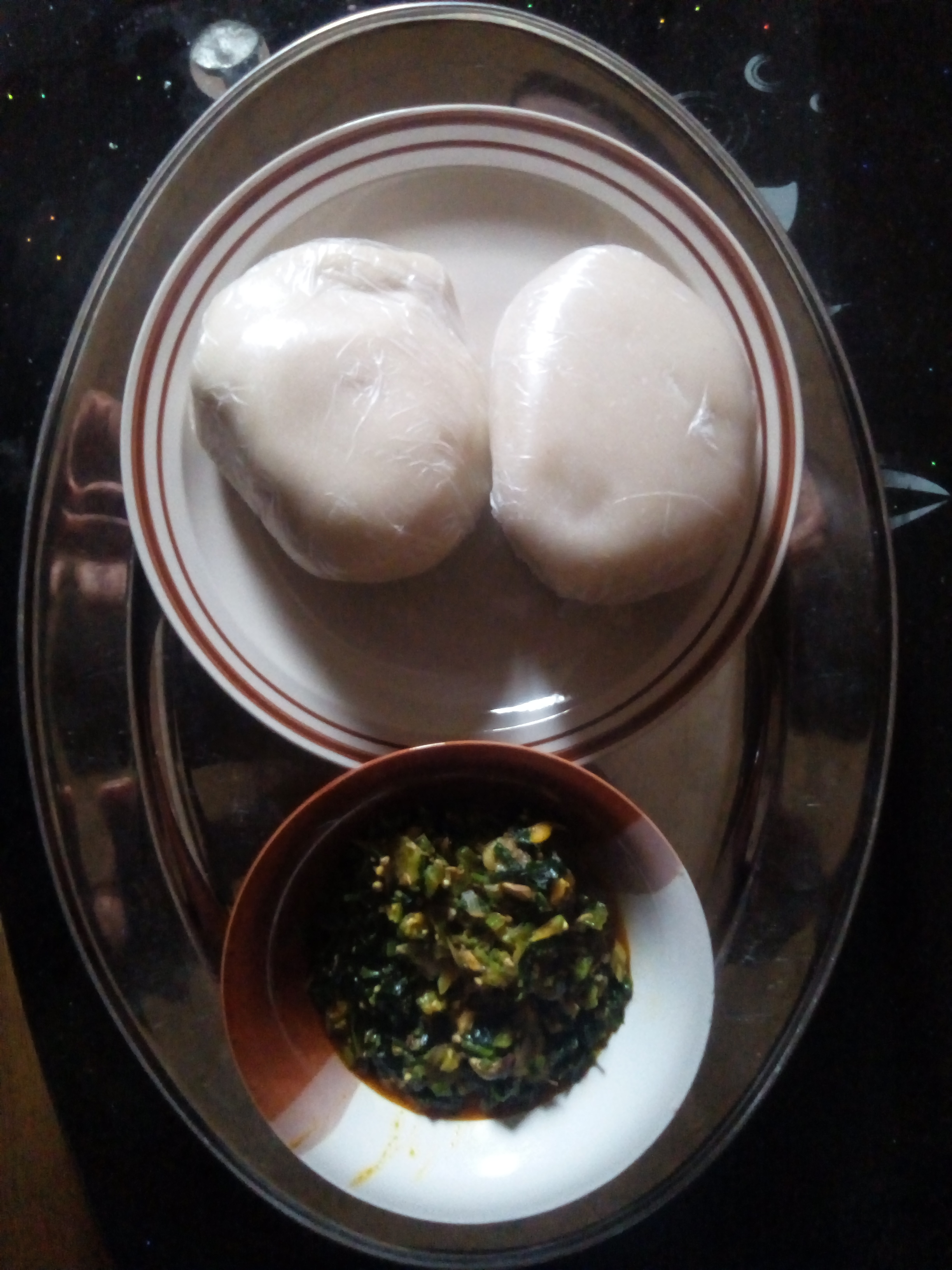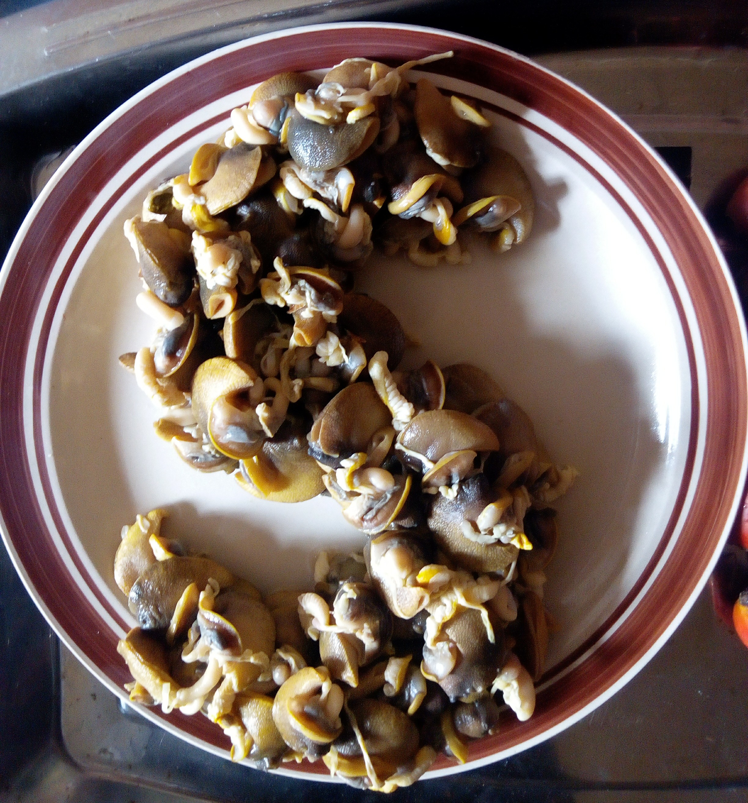 This is how my wife @nellyprecy prepared my dinner with snail, banga (raw palm oil) and vegetable. The snail grow naturally in our plantain plantation, See image below