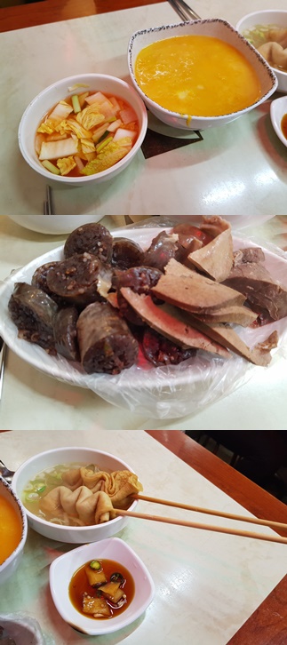 The second photo is SUNDAE and others. SUNDAE is made with blood of pig and cellophane noodle. Its texture is sort of chewy.