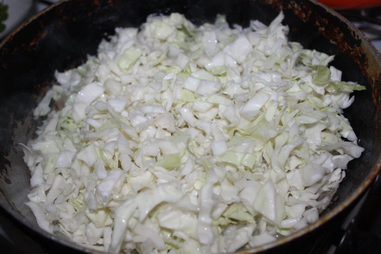 11. Put the bacon and cabbage and fry 10 minutes to cabbage soaked his taste.