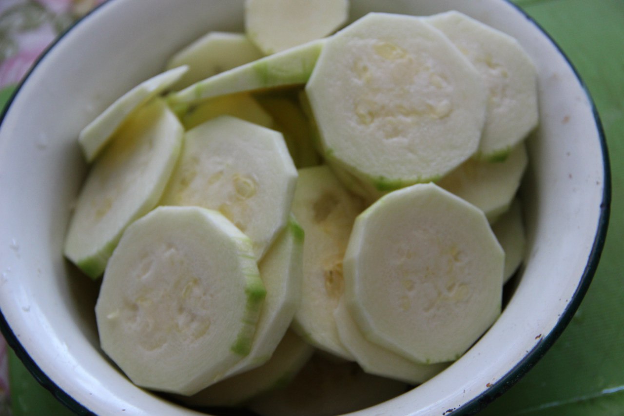 2. Young zucchini (not yet formed large seeds) cleaned, cut into thin slices.