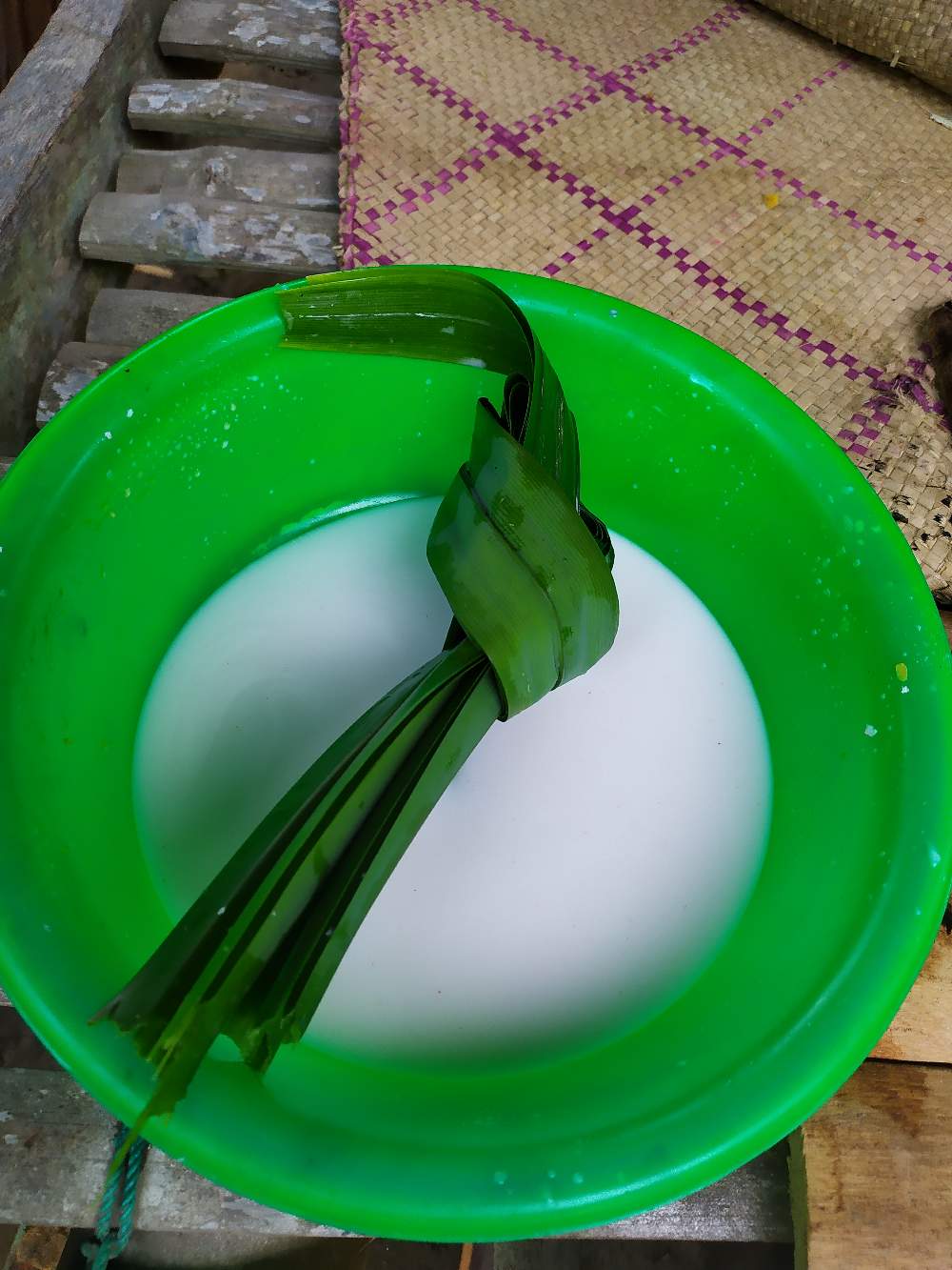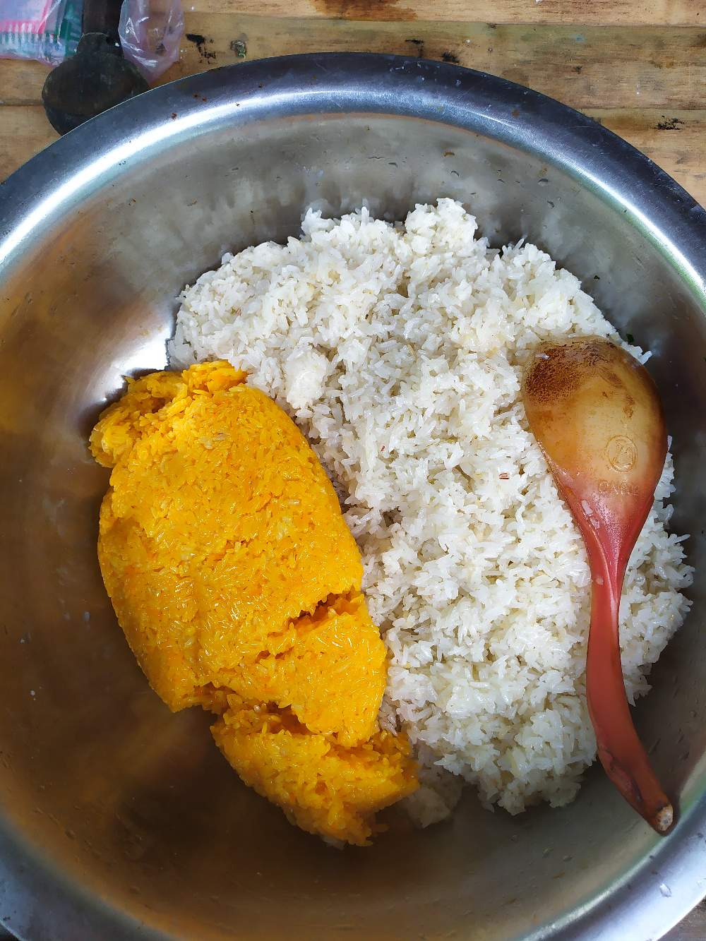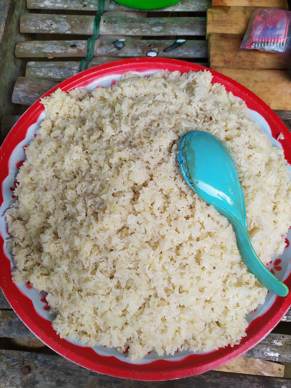 - half cooked steamed glutinous rice beras ketan yang dikukus setengah matang