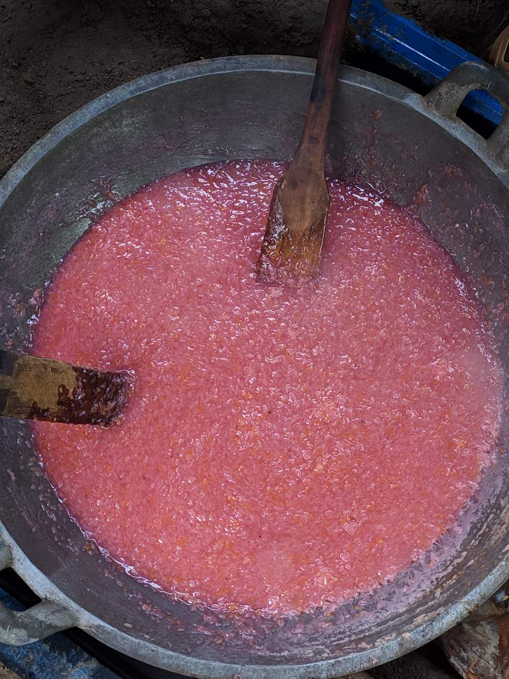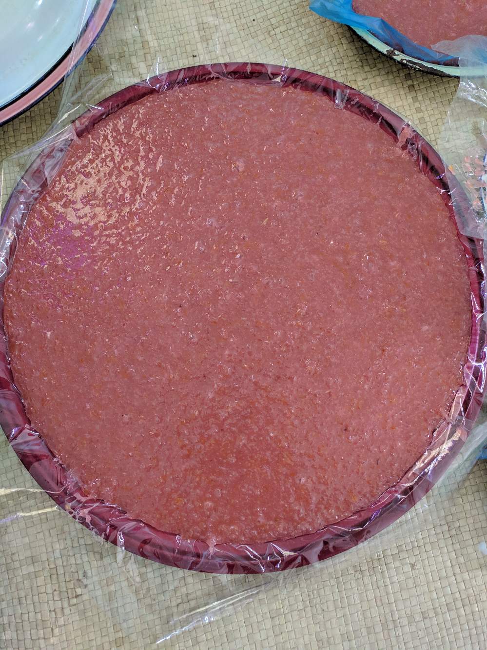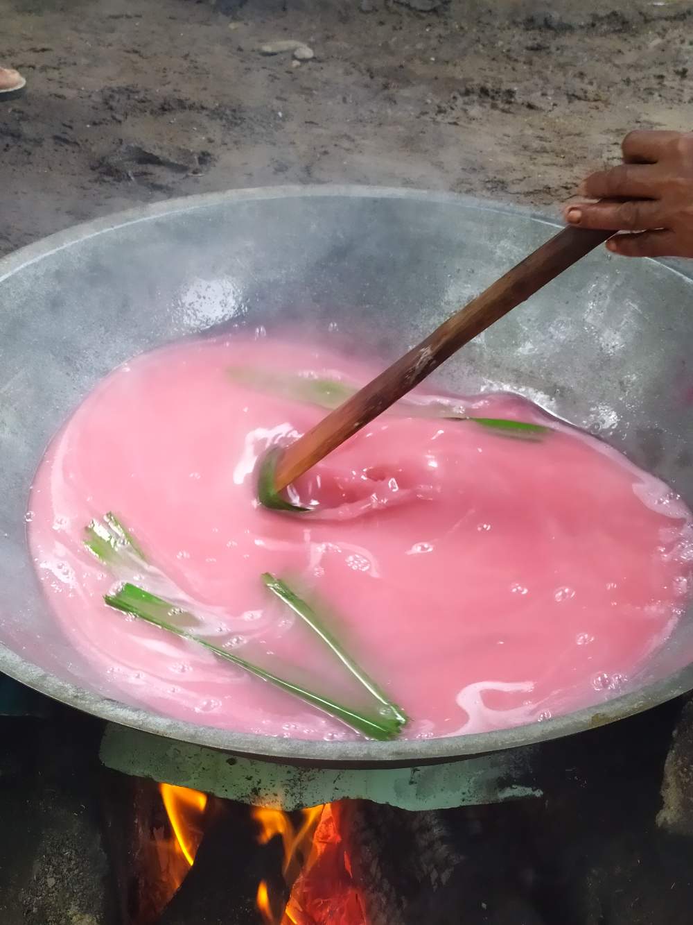 - then sugar is colored with coloring and added with sugar+ fragrant pandanus selanjut gula yang diwarnai dengan pewarna dan di tambah gula pasir+santan+daun pandan wangi