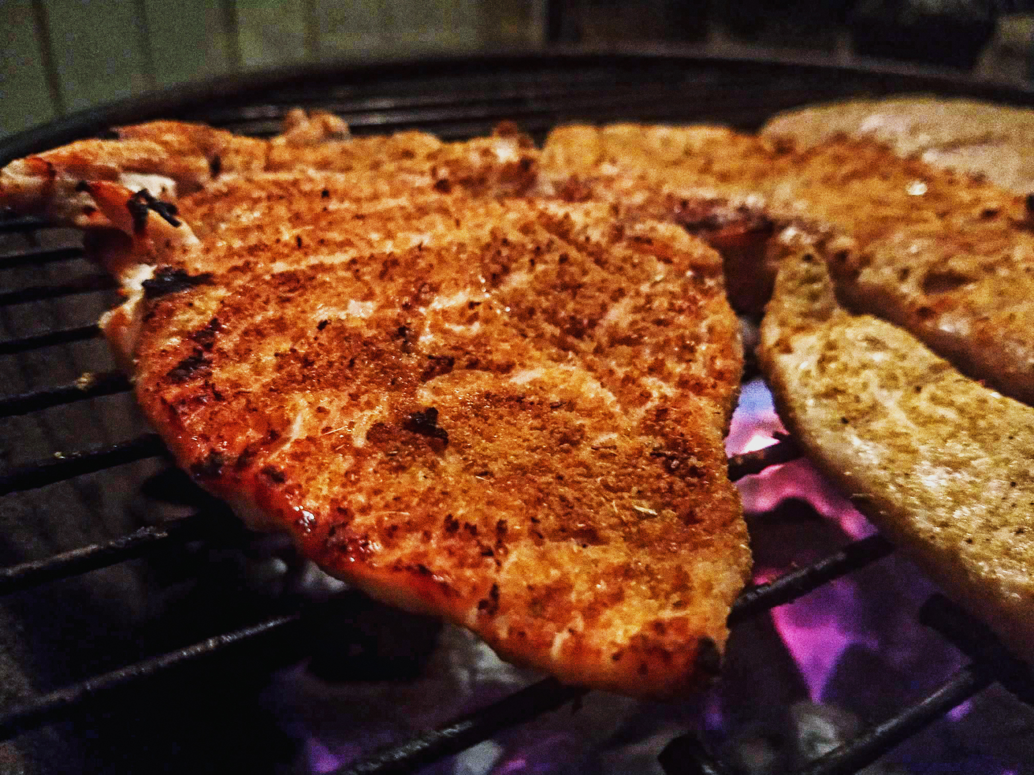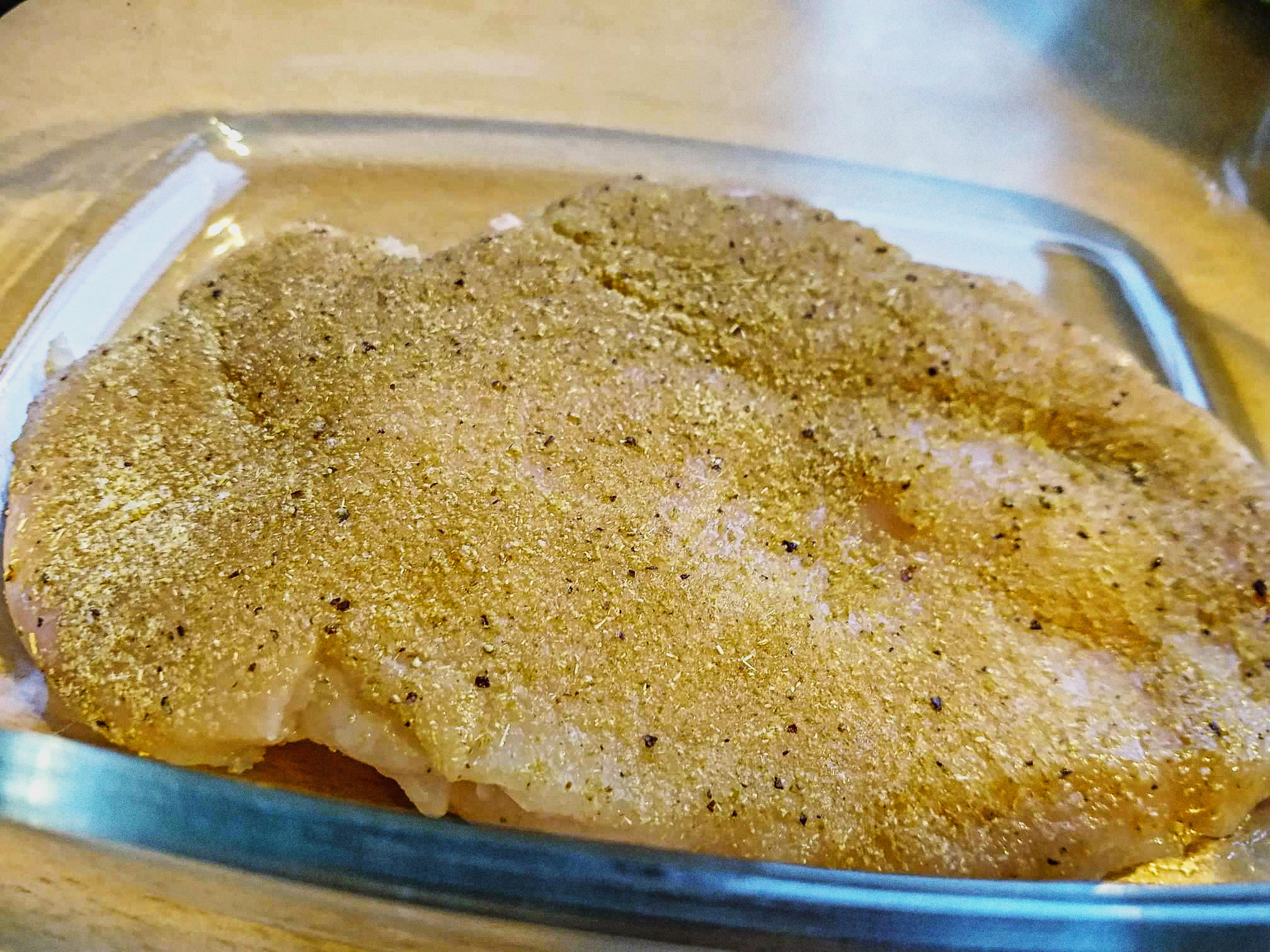 Afterward, I rubbed the flattened chicken breasts with a mixture of (a lot of) fennel seed, garlic powder, and salt.