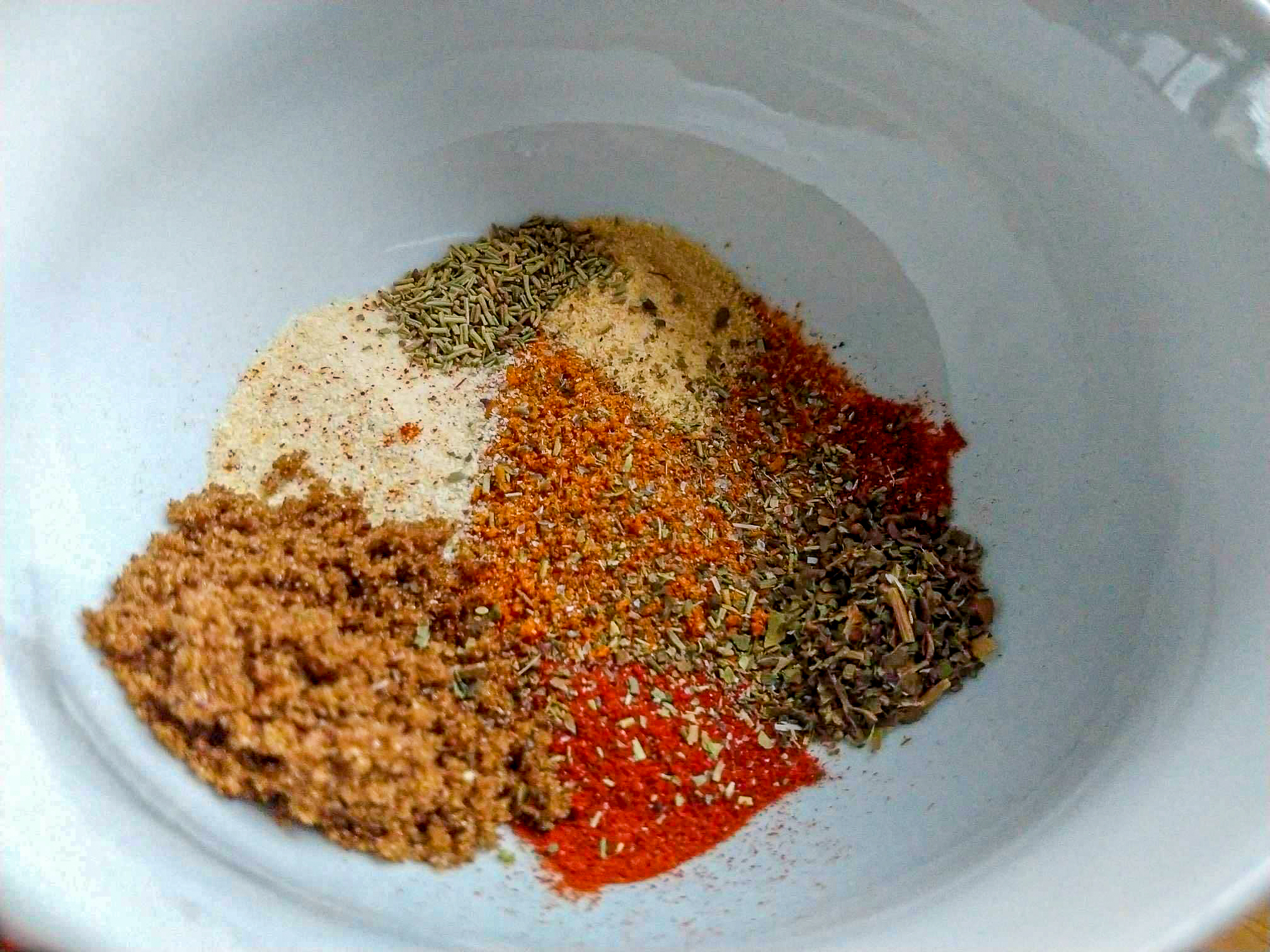 I also wrapped the potatoes in aluminum foil and put them on the grill for a while. When the chicken breasts reached a core temperature of 72 degrees Celcius, I took them off the grill. I dusted the potatoes with a dry rub based around brown sugar, smoked paprika powder, onion powder, garlic powder, dried rosemary, and dried thyme.
