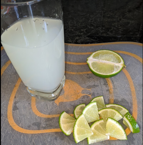 Slice the lime the long way in half and then again so you have two quarter wedges, cut the wedges about a 3/16" in width so you have some "cute" wedges. In a glass mix the lime juice and and water; 1 part lime juice, 2 parts water. You can ahead of time figure out how much liquid your mold holds so you don't over or under mix.